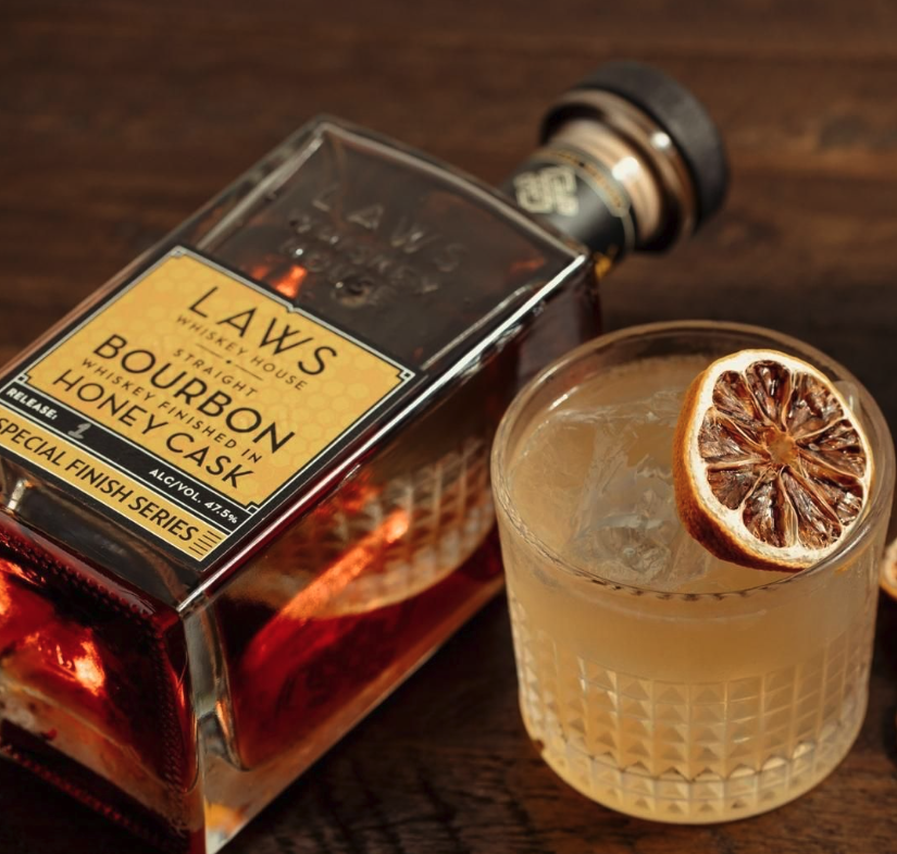 This whiskey was aged for more than three years in charred oak barrels that were then used to age Colorado honey. Once the honey was harvested, the barrels were filled with the bourbon once again. The four-grain whiskey is a blend of corn and heirloom malted barley, wheat and rye.