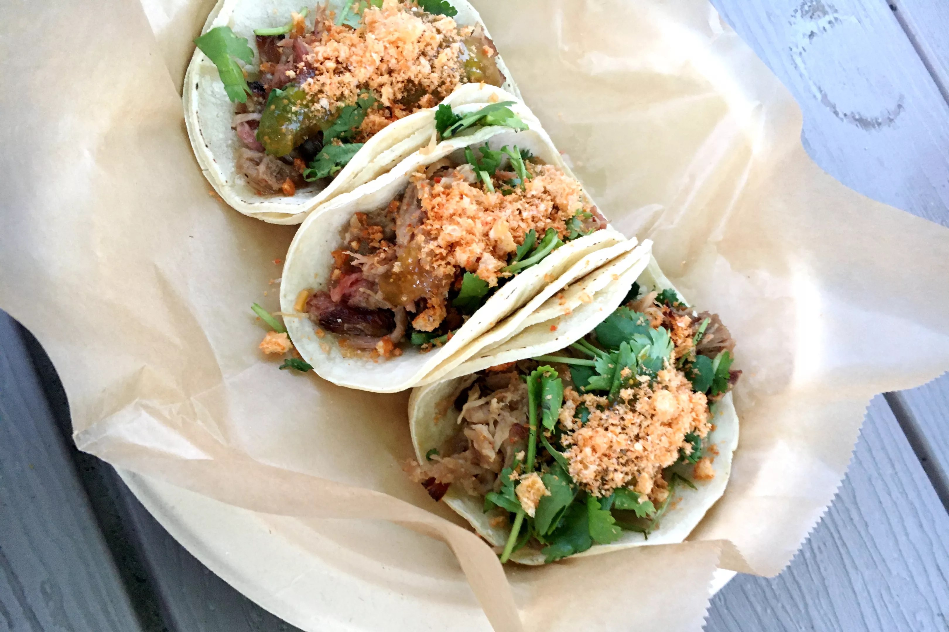 Adobo's smoked carnitas tacos are now being served at First Draft Taproom.