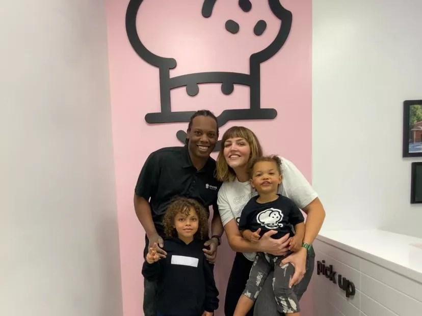 Emily Russell, Crumbl Cookies regional manager, with her husband, Chris, and their two kids.