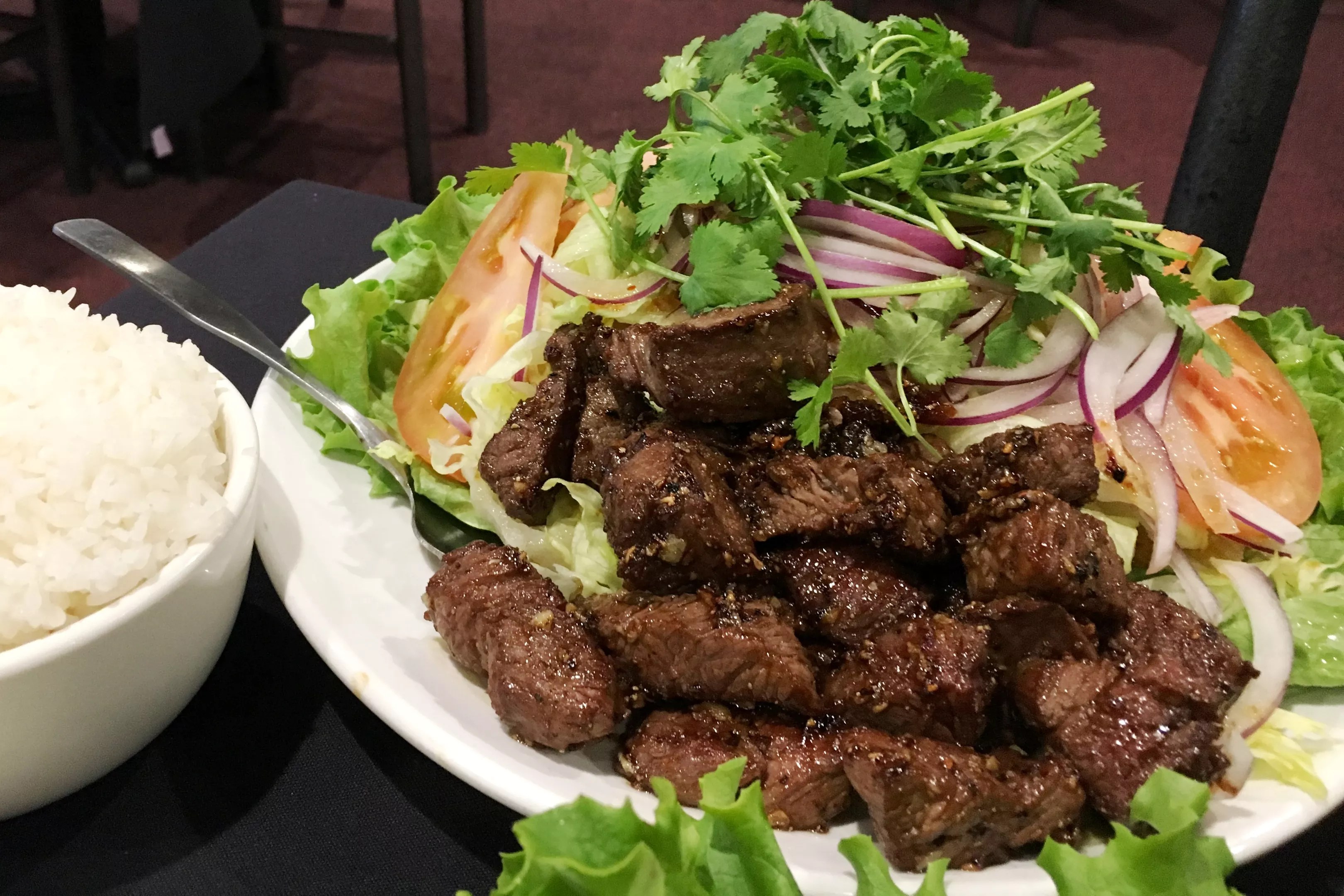 Comforting dishes like shaken beef (bo luc lac) served with rice and a salad share space with family-sized hot pots and roll-your-own spring roll platters heaped with whole fried soft-shell crab, shrimp paste and grilled-pork skewers. Nguyen notes that the menu is still a work in progress while her team gets used to the huge kitchen and dining room, which seats up to 600 guests.