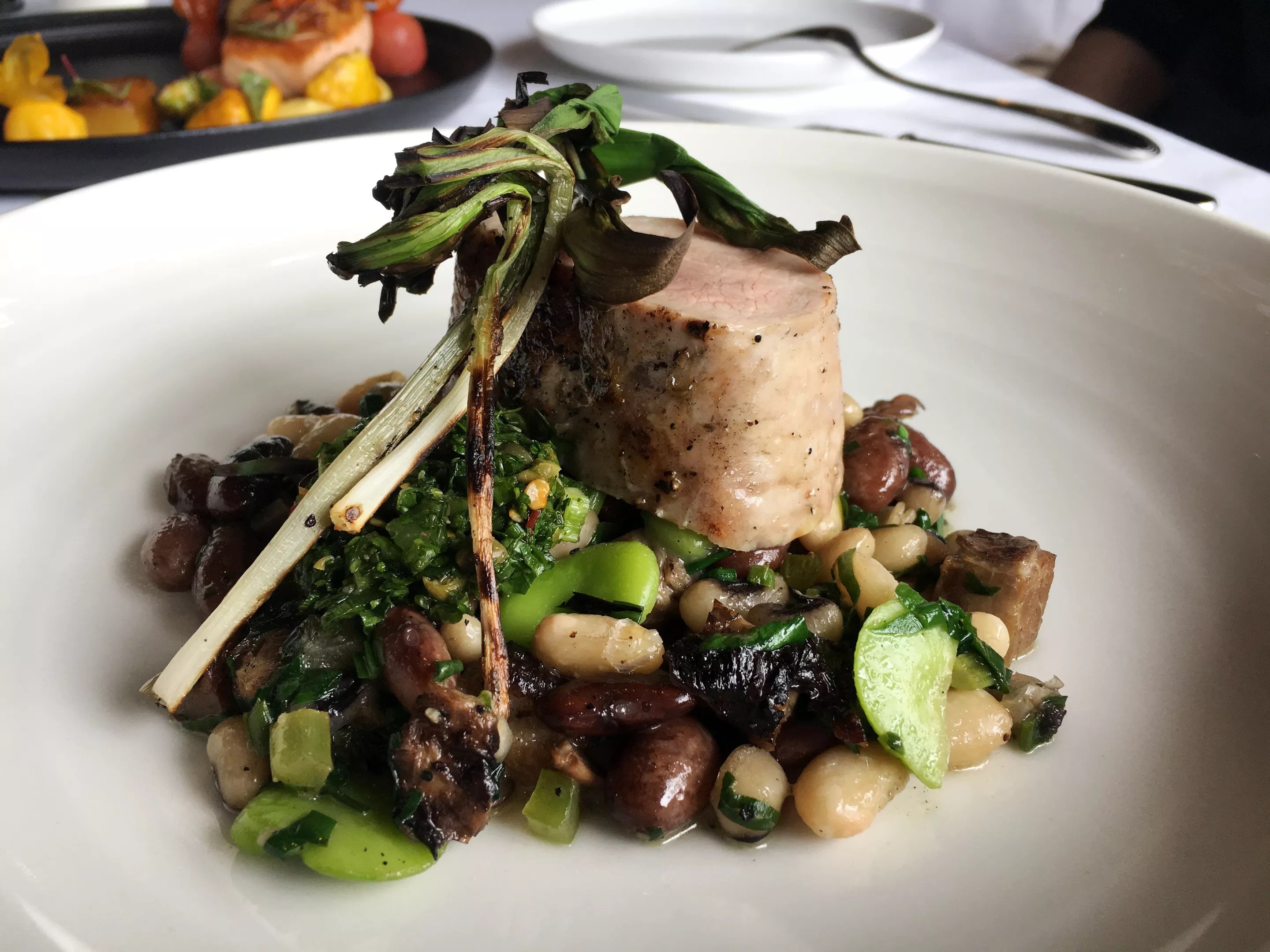 Denver restaurants are celebrating spring with bright, verdant new dishes and sweeping menu changes. Warm weather brings a bounty of fresh produce – peas, fresh beans, new potatoes, radishes, ramps – and foraged ingredients, including ramps and morels. Here are a few dishes from Barolo Grill, Hearth & Dram and Mister Tuna to give you a taste of the season. The flavors of an Italian Aperol spritz top rich foie gras at Barolo Grill. Mark Antonation Barolo Grill’s pork tenderloin is served with grilled ramps and five kinds of beans, each cooked separately. Mark Antonation