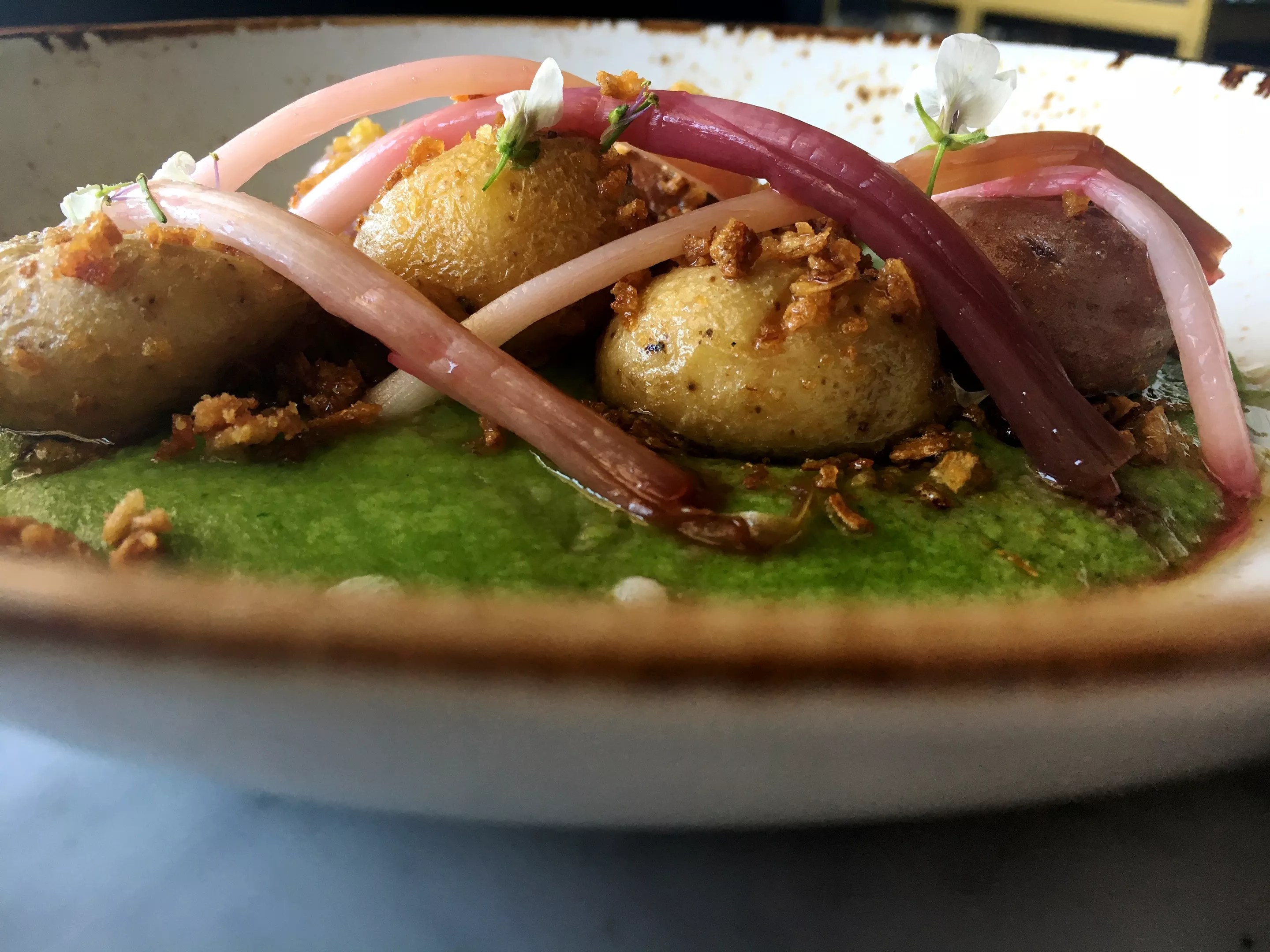 If you’re visiting for lunch, don’t miss the Parisienne ham sandwich, made with a generous helping of pork rillettes and slathered in Jasper Hill Farm Harbison cheese sauce. H & D specializes in whiskey, offering hundreds by the bottle plus five single-barrel options (picked specifically for the restaurant) poured on tap. You can order a flight of all five, four of which are made in Colorado, or let the bar team guide you to the right whiskey to match your mood and food. Mister Tuna’s hummus is made with gigante beans, which are also served whole alongside the dip. Mark Antonation Peewee potatoes with pickled onion, wild ramps and potato fondue. Mark Antonation
