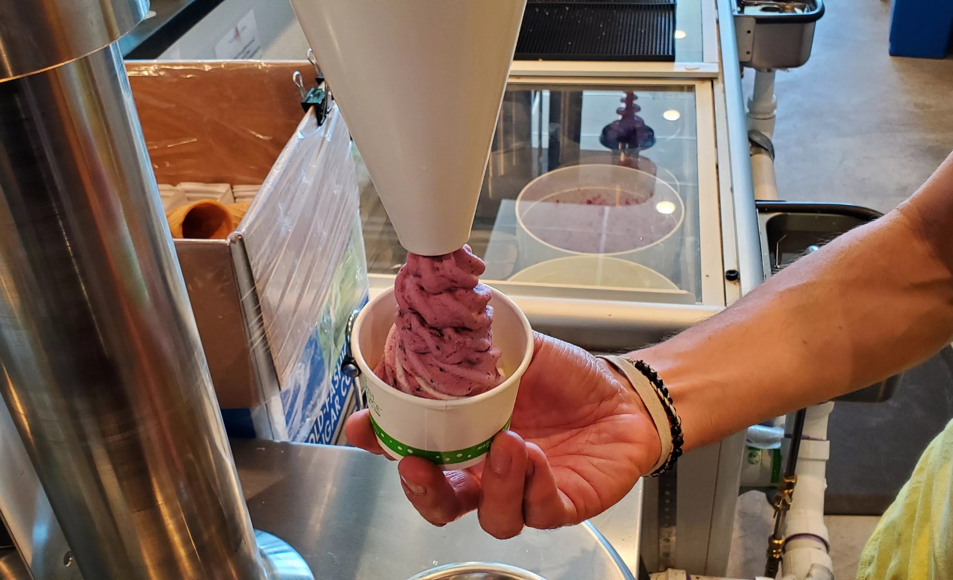 Making New Zealand ice cream at Happy Cones Co. (before the pandemic).