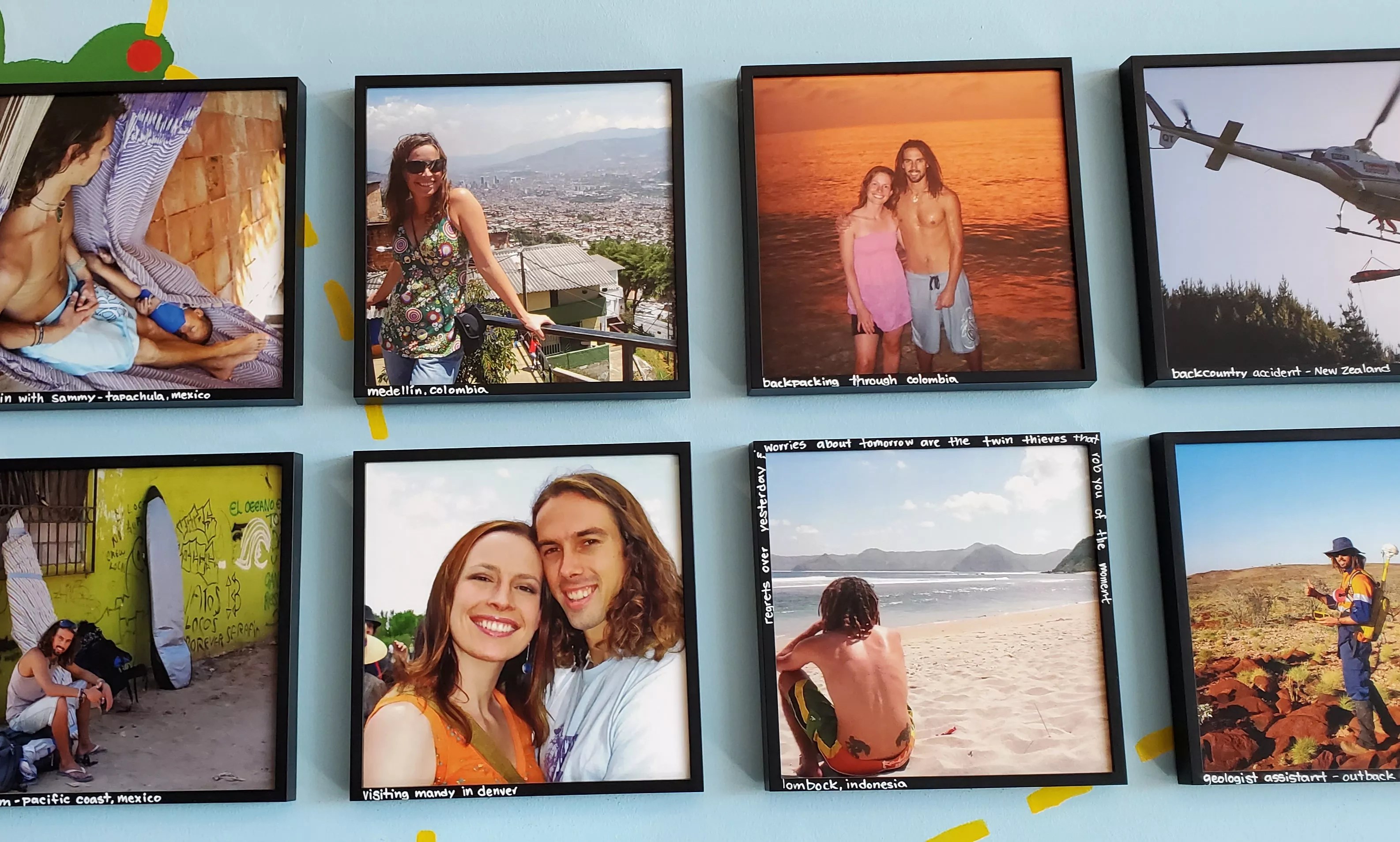 Some photos on the wall of Happy Cones Co. from the owner’s travels.