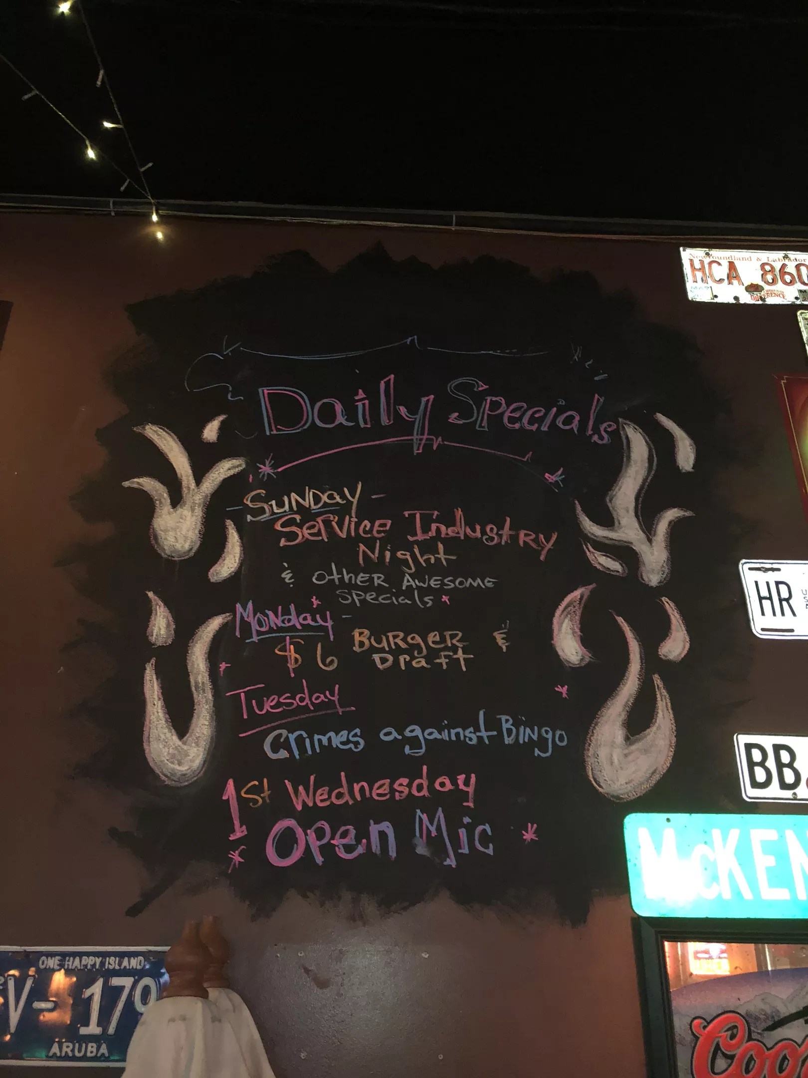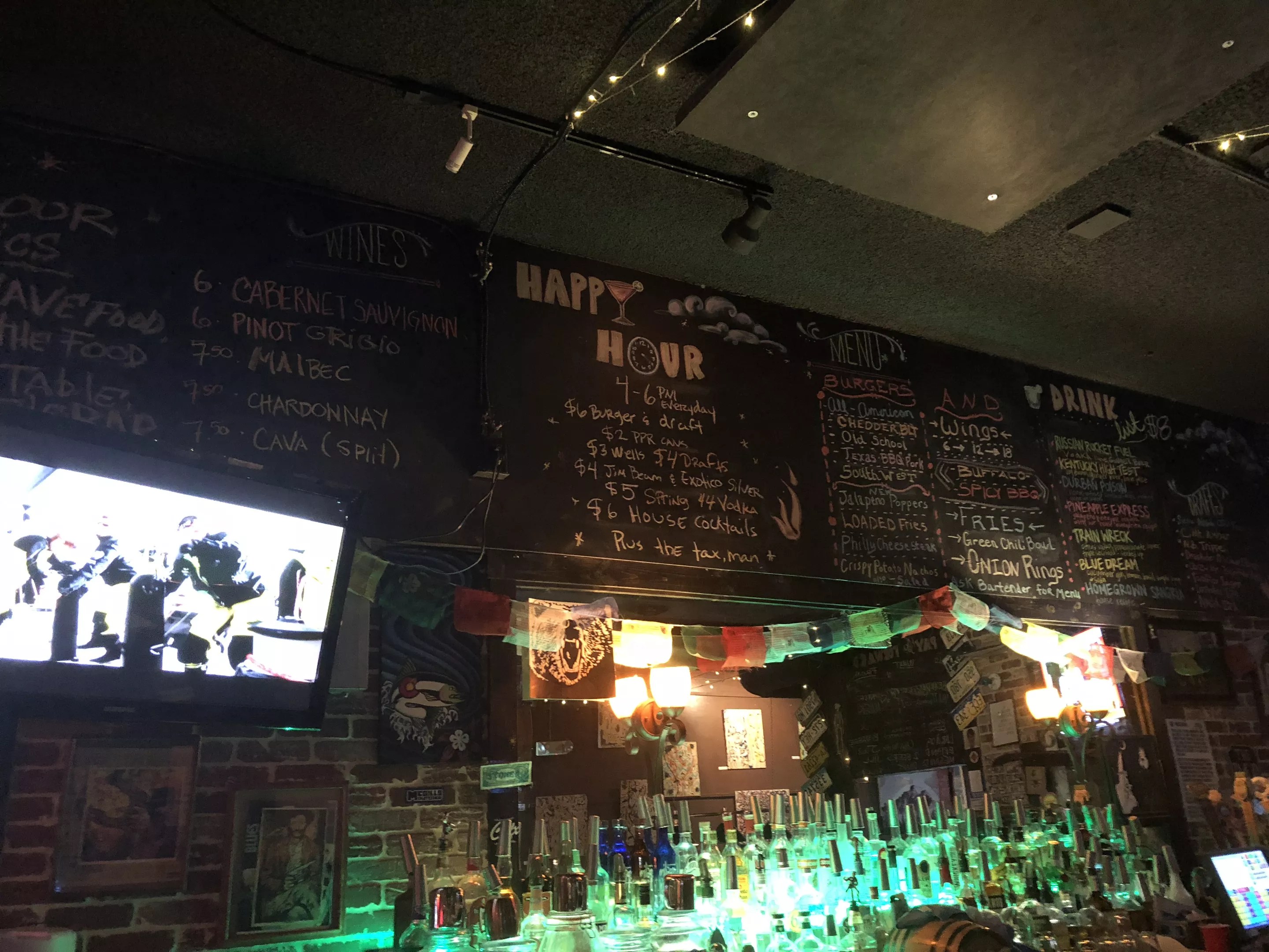 The Monday special, $6 for a burger and a beer, had me regretting my decision to eat before I arrived, so I settled for just a beer and cheered myself with the knowledge that the same special is available every day of the week at happy hour, which runs from 4 to 6 p.m. Other notable happy-hour deals include $2 PBR cans, $3 wells, $4 drafts, $4 Jim Beam and Exotico Silver, $4 vodka and $6 house cocktails – all of which, according to the chalkboard sign, are “plus the tax, man.” The rest of the food menu is primarily burgers, wings and fries, which is why it can fit on a chalkboard over the bar.