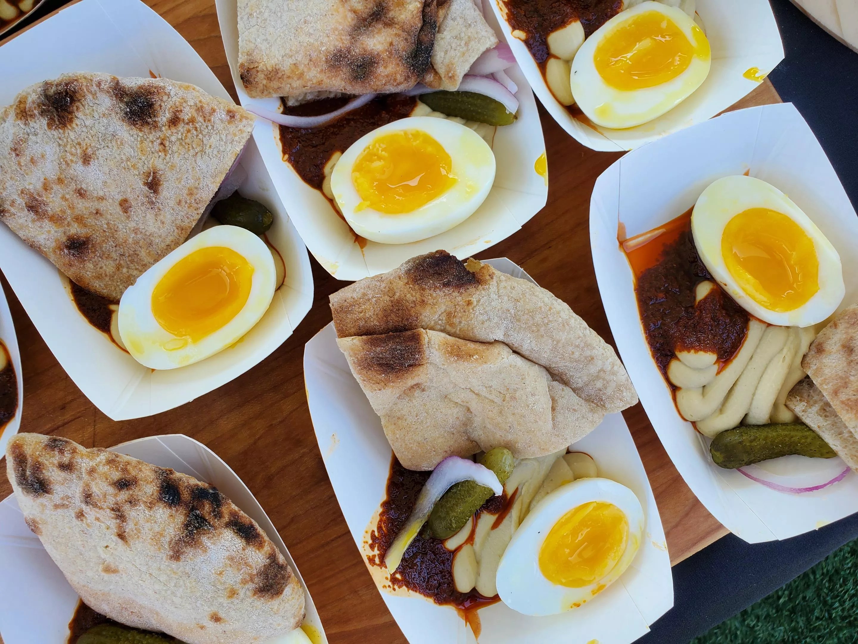 Safta’s weekend brunch buffet is a feast of epic proportions, which is why it landed on our list of the fourteen best brunch options in the metro area. Out to Brunch attendees with VIP access got to taste one of the many reasons we love Alon Shaya’s eatery inside the Source: its ultra-smooth hummus, served with thick, almost tangy pita, along with harissa, red onions, cornichons and a perfectly soft-boiled egg.