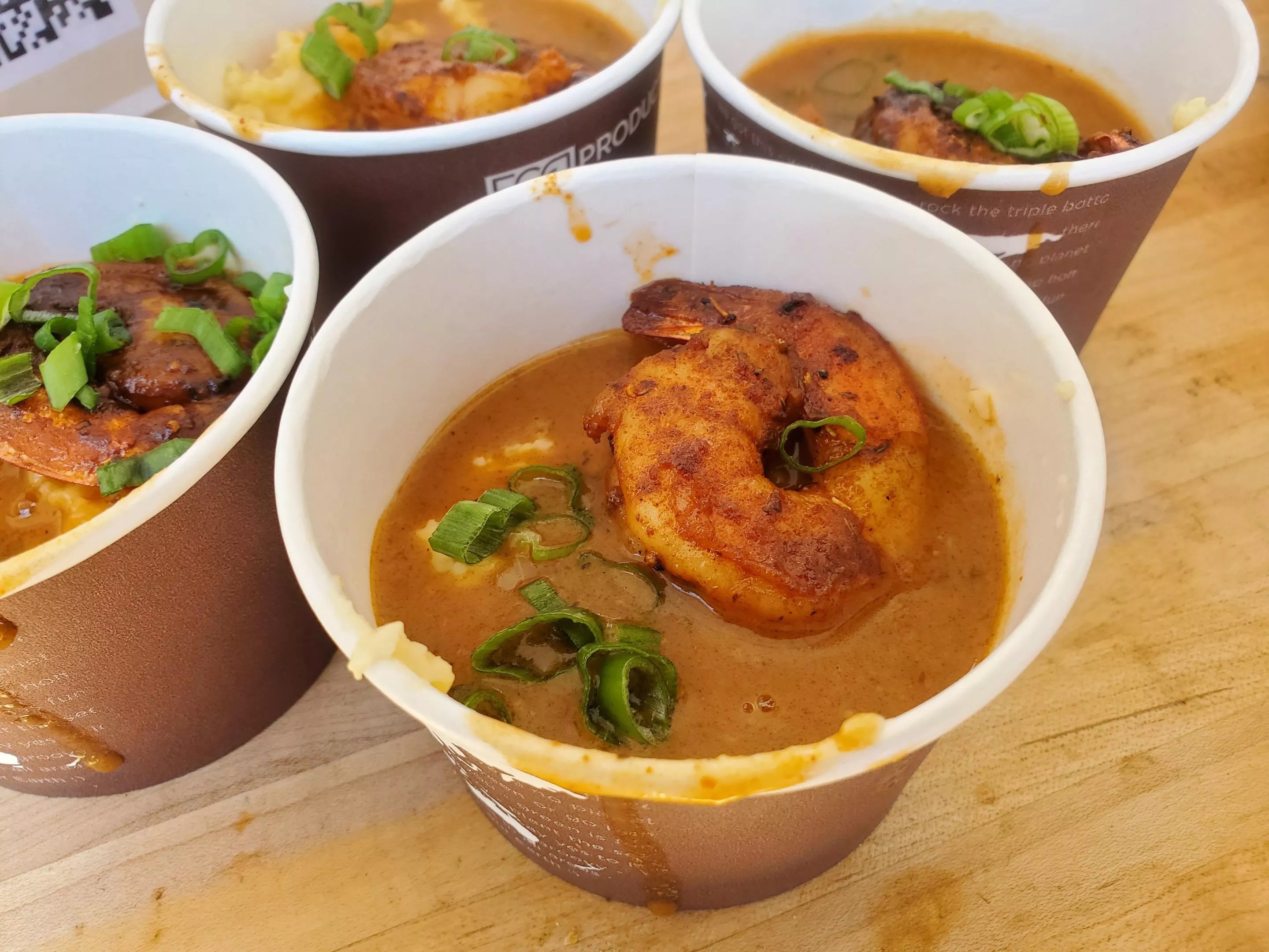 Revival brought two Southern-inspired dishes to Out to Brunch: a bison gumbo and the best shrimp and grits we’ve had in years. The shrimp, cooked in small batches on site to ensure it stayed tender, was bathed in a rich, creamy, tomato-based sauce with chorizo and poblano, giving the dish a pleasant kick. We’re planning to go in for a full serving ASAP.