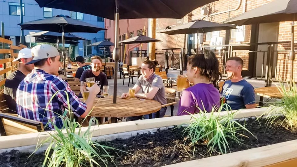 This five-year-old brewery has converted its entire off-Colfax parking lot into a spacious beer garden, complete with an outdoor host station and tented tables for added shade. You can’t belly up to the bar inside; instead, let Cerebral bring the beer to you. Make sure to ask about the perfect pairings to go with offerings from a parade of food trucks, including Miss B’s Vietnamese, Rumichaka Eats (some of the best Peruvian food in town), Clamato Time and Saba’s Ethiopian. Visit cerebralbrewing.com for a food truck schedule. Engelwood Grand and other downtown Englewood establishments have expanded their outdoor seating. Courtesy of Englewood Grand
