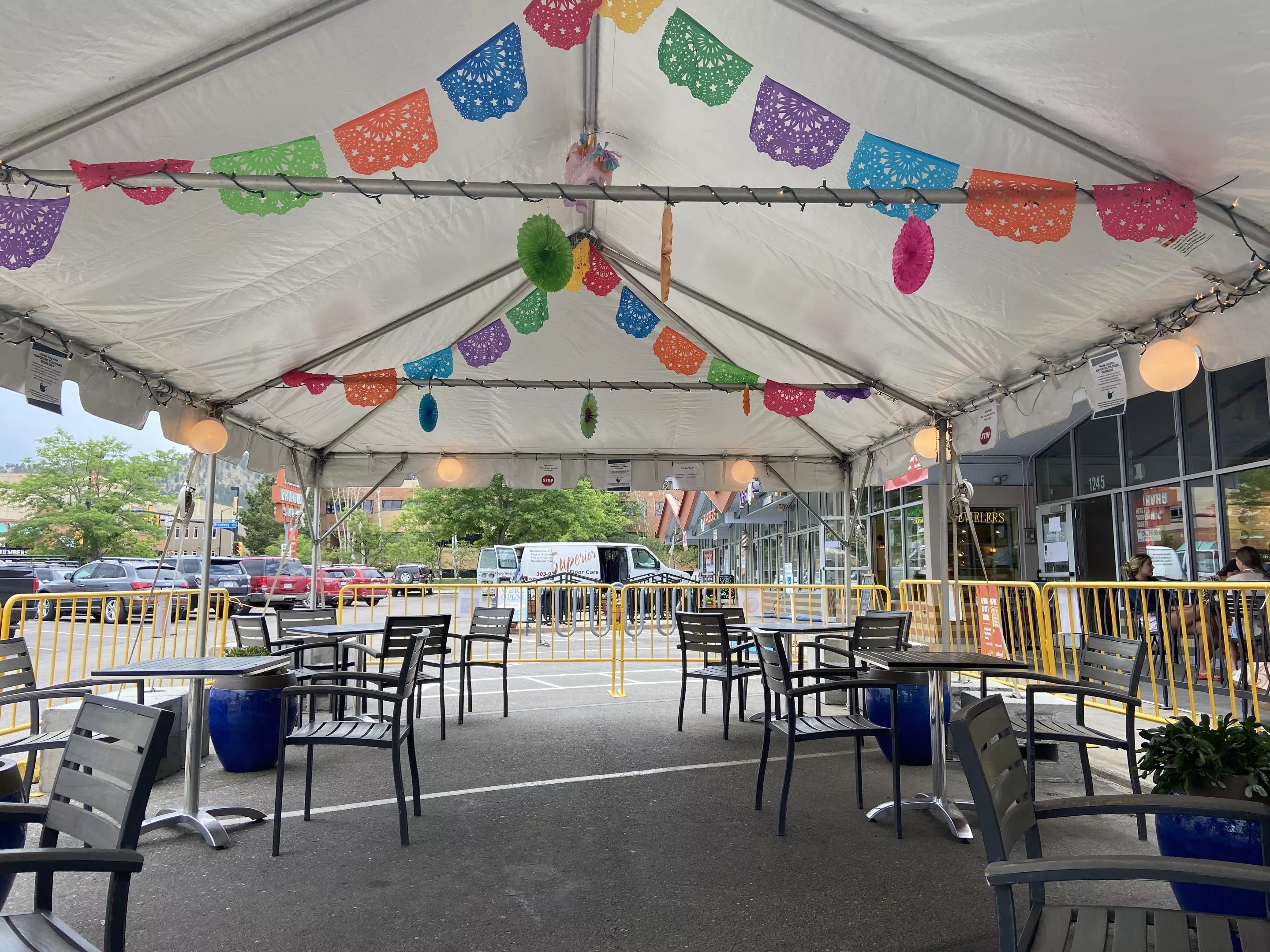 One of Denver’s oldest Mexican restaurants has spilled out onto its parking lot, marking a first in its storied history: outdoor dining. Brewery Bar II‘s entire lot is now roped off into one giant urban oasis, with an atmospheric view of the old Rio Grande grain elevators on one side, the traffic along Kalamath on the other, and a great mural in between. A typical Brewery Bar experience isn’t complete without tongue-searing green chile, a “Tiny” 24-ounce draft beer and a room full of sports fans cheering on the home team. You can still get two out of three, but you’ll just have to go without the game for now. Instead, score a seat on the patio.