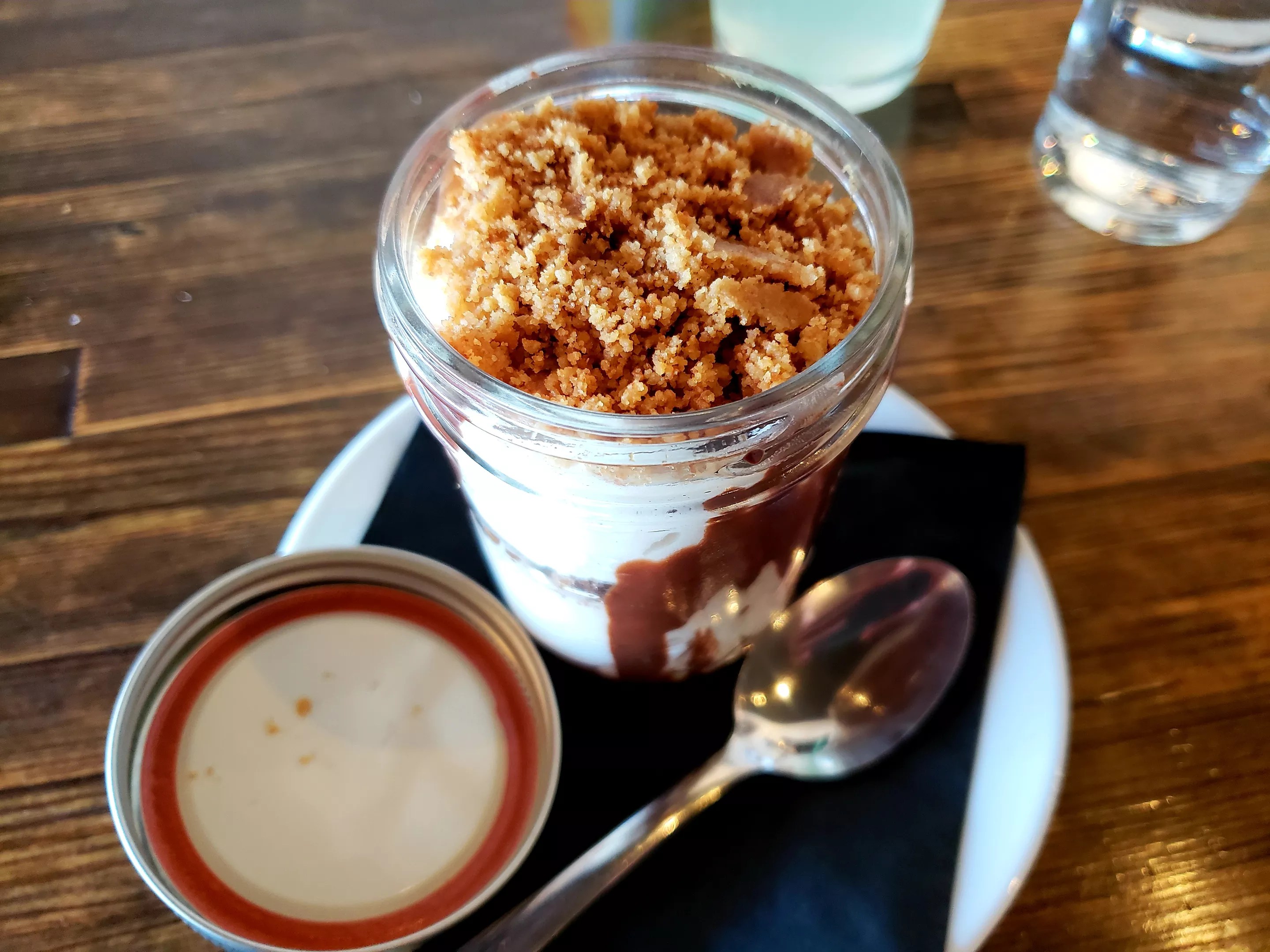 Peel Handcrafted Pizza is the kind of restaurant that anyone would want to have in their own town. At just over 12,000 residents, Frederick is lucky to have such a pizza-obsessed family in its midst. Head there for a mini summer vacation and enjoy the farmers’ market (Thursdays from 4 to 8 p.m.), visit the Miners Memorial Museum, or walk around Milavec Reservoir. Then head to Peel and settle in at the bar, inside at one of the comfy tables or outside on the deck – and fill up on pizza. The porch at Peel Handcrafted Pizza. Linnea Covington A peanut butter and chocolate parfait from Peel Handcrafted Pizza in Frederick. Linnea Covington