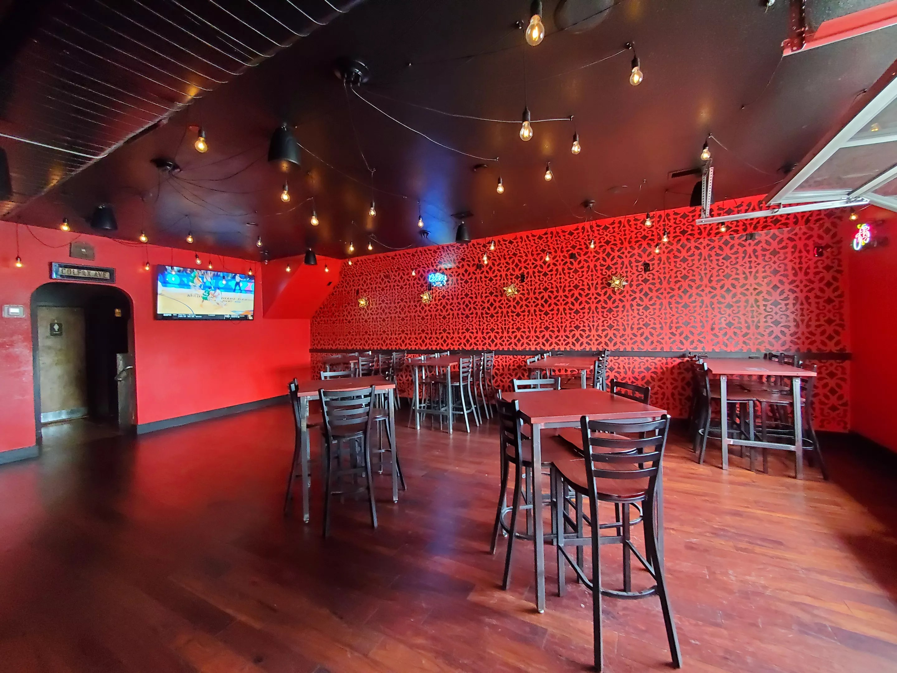 In April, the Satire celebrated with a grand reopening party. The space has been opened up, with a fresh coat of red paint and a new game room that leads to a large outdoor area. Part of the new decor is a glowing neon sign with longtime employee Joey Mestas’s catchphrase, “Plates are hot, have a nice time….” But when the bar reopened, there were no plates.
