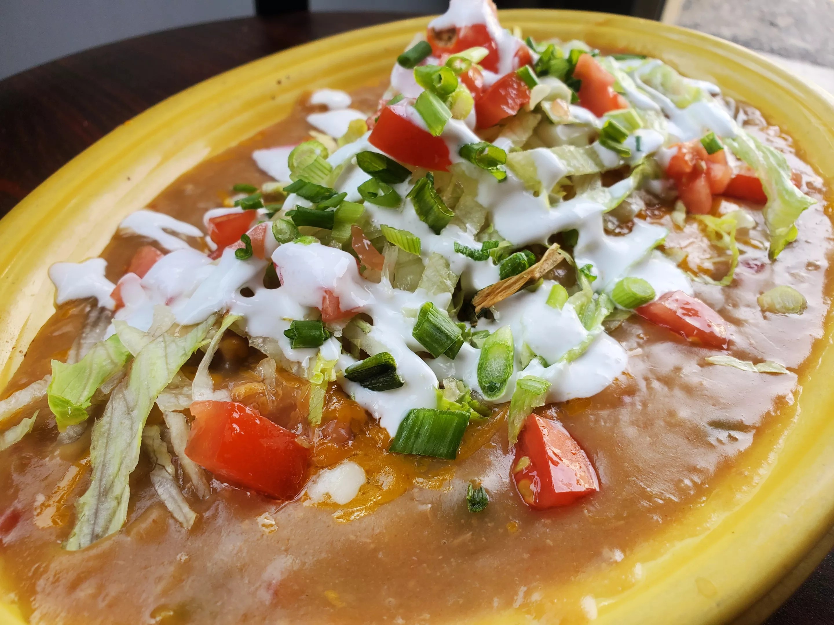 We may have been a little overzealous in ordering, because by the time we dug into the burrito, stuffed with ground beef and beans and smothered in thick, gravy-like green chile, we were hardly able to make a dent. But I kept going back for bites anyway, because it’s hard to resist this kind of comfort food.