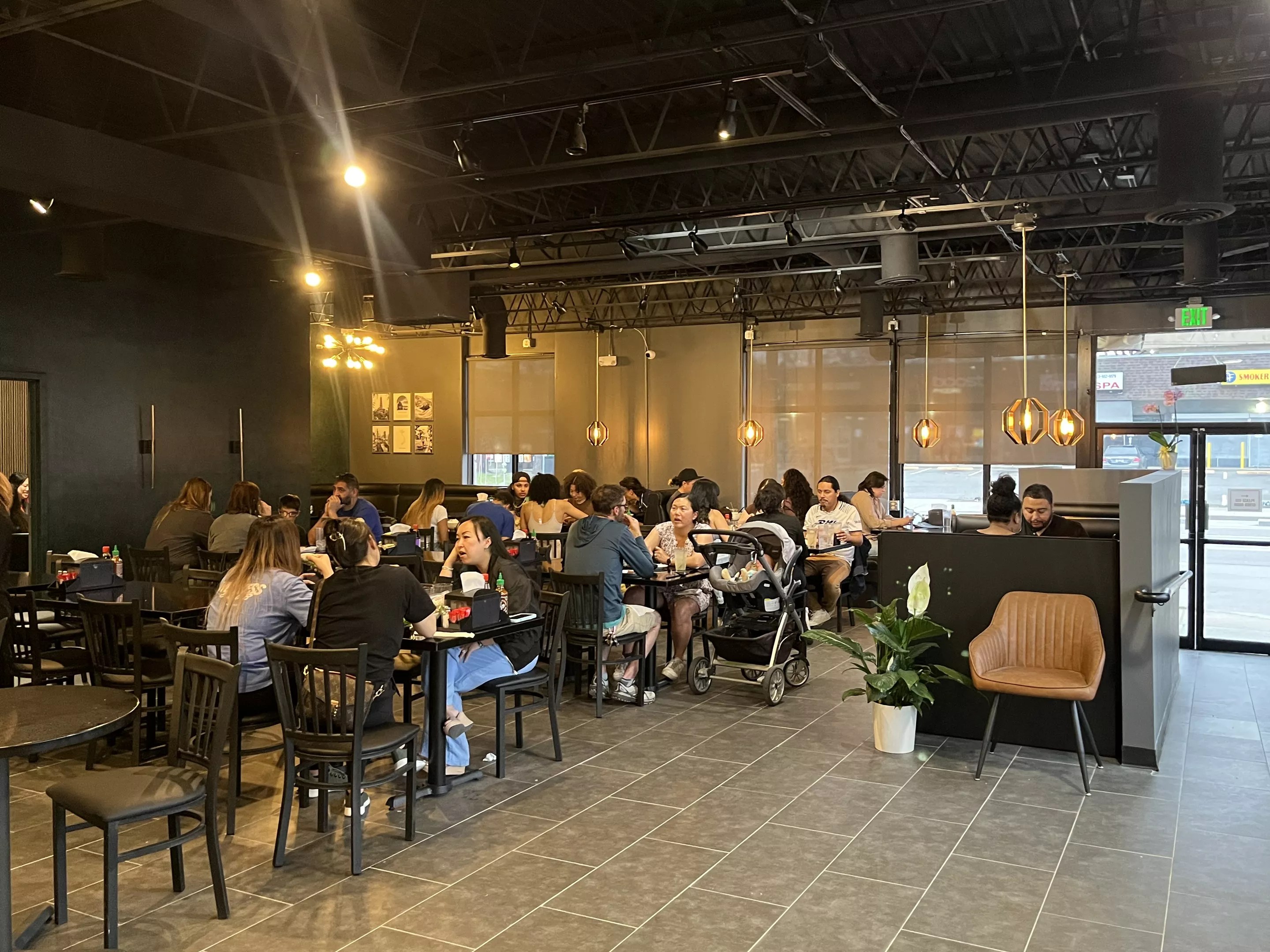 The dining room at Pho Social offers a casual, warm setting for both lunch and dinner.