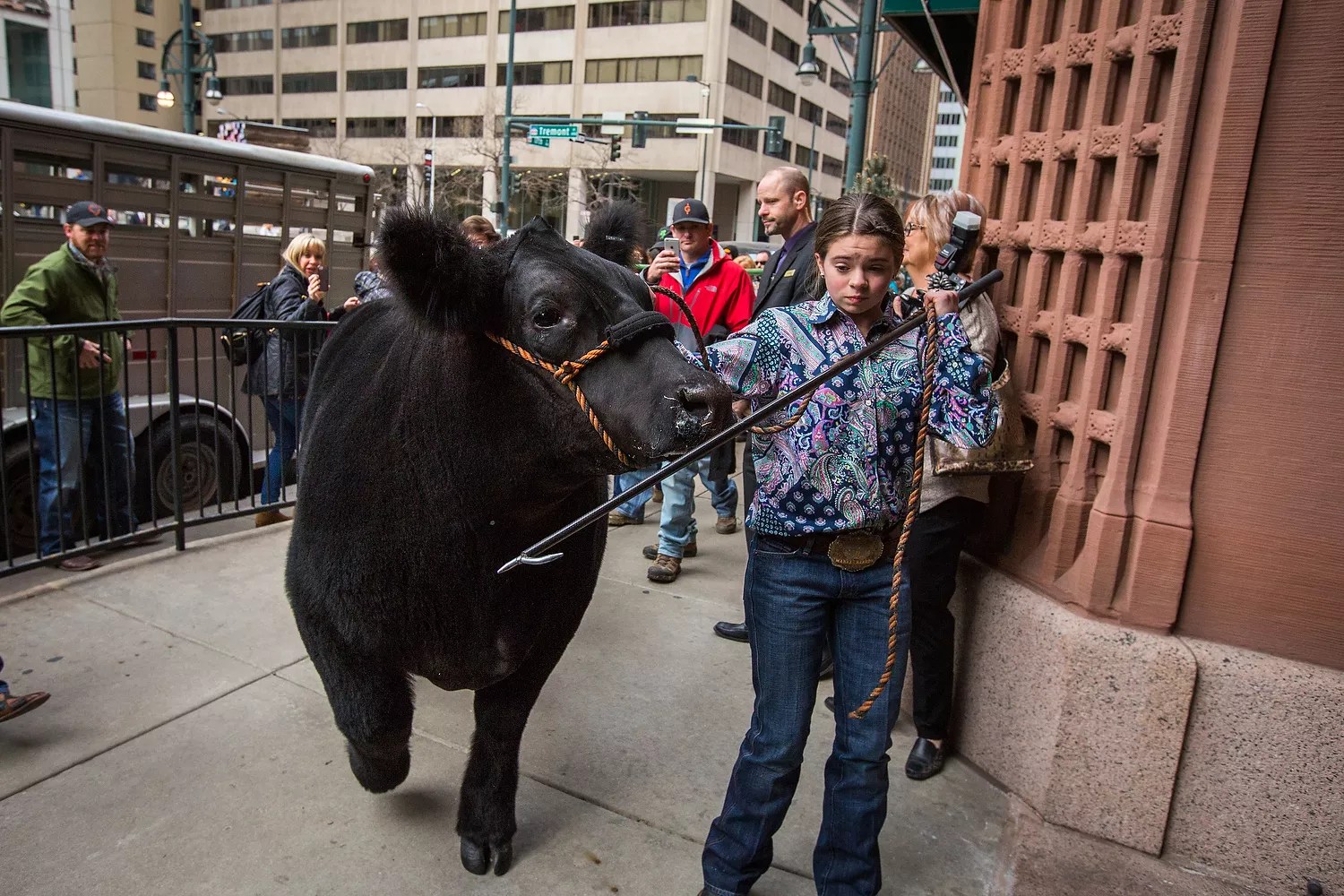 You know you’re in Denver during the National Western Stock Show when you sit down for tea at the Brown Palace Hotel and your luncheon companions include two fluffy steers. Honoring the grand champion steer is an annual tradition at the downtown hotel; this year’s winner was Fu, raised by Lillie Skiles of Stratford, Texas. Reserve grand champion BFF, raised by Mikala Grady of Grandview, Texas, also got to experience the posh life at the Brown. We just hope nobody broke out the A-1 Sauce.