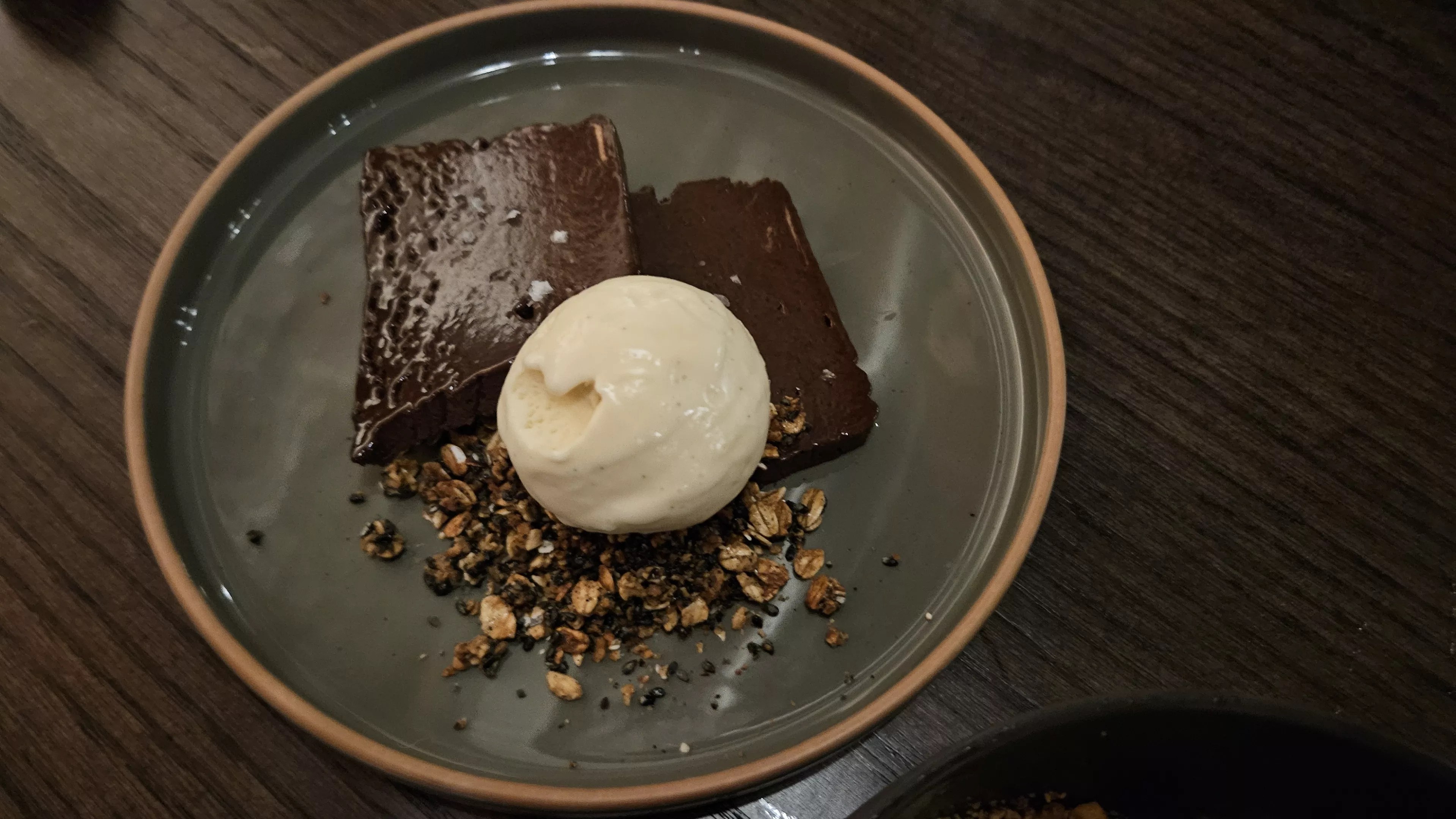 The menu at Pig and Tiger consists of “Nibbles,” “Vegetables,” Dumplings,” “Shareables” (entrees), “Rice & Noodle” and “Desserts.” Standouts include the Pig and Tiger salad, which includes chewy strips of tofu gan and chrysanthemum; Jellyfish salad, which mixes smashed cucumbers with crunchy jellyfish; Taiwanese corn salad, featuring heavenly Olathe sweet corn (currently in season); chili wontons with long, green, wonderfully chewy jade noodles coated with a Taiwanese pesto; incredibly crispy, double-fried Taiwanese fried chicken (coated with tapioca starch and sweet potato starch) served with “chicken fat rice” and a not-too-sweet chili honey; and desserts that include an almond panna cotta pineapple shaved ice and refreshing chocolate marquise with dark chocolate, black sesame mousse and ginger ice cream.