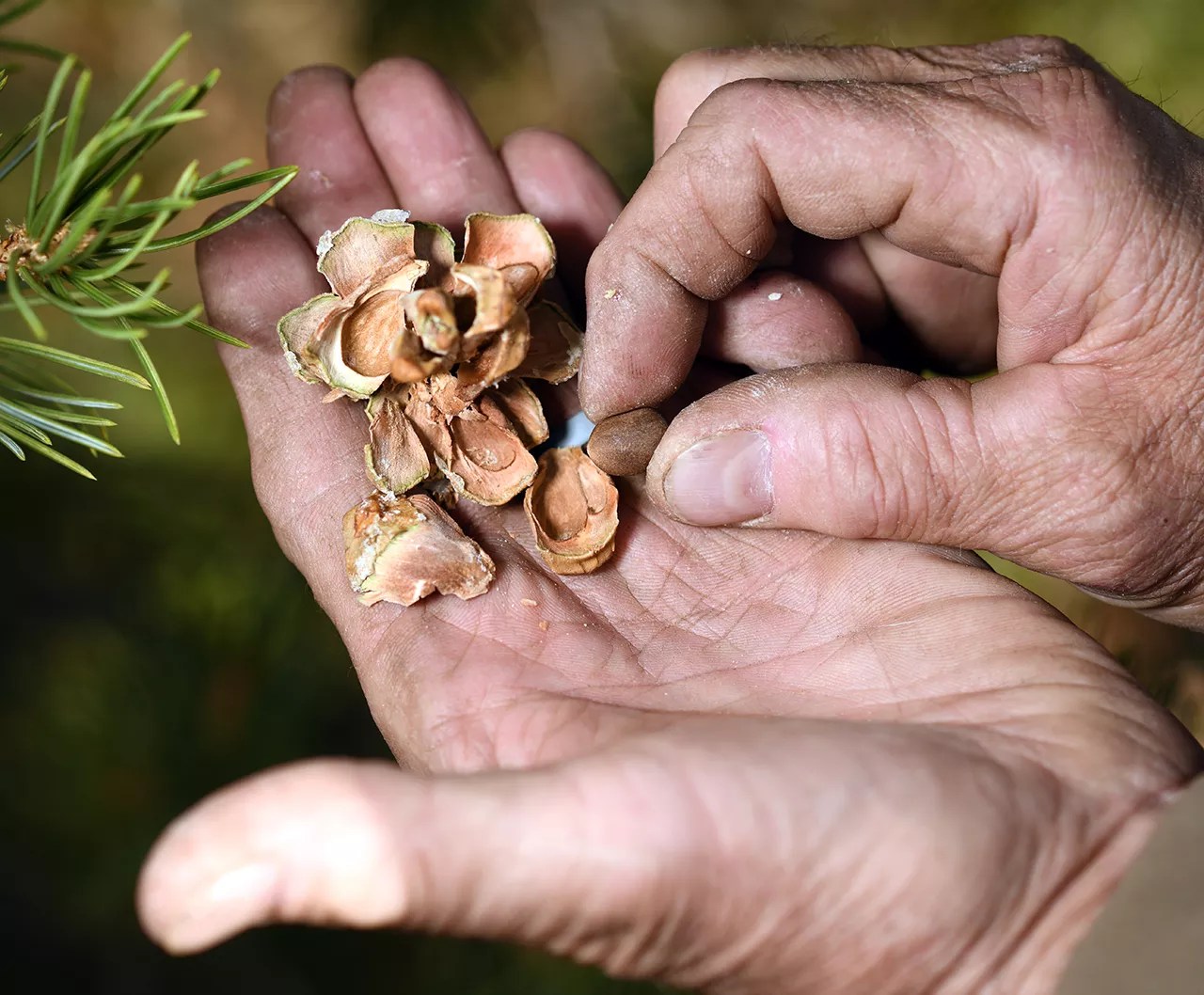 Ready to harvest them yourself? Find a permissible tree, grab a pair of gardening gloves, and look for fallen cones. Crack one open to find the white seed inside. Not all seeds are good; a useful way to find out is to put the seeds in water. Those that float have gone bad.
