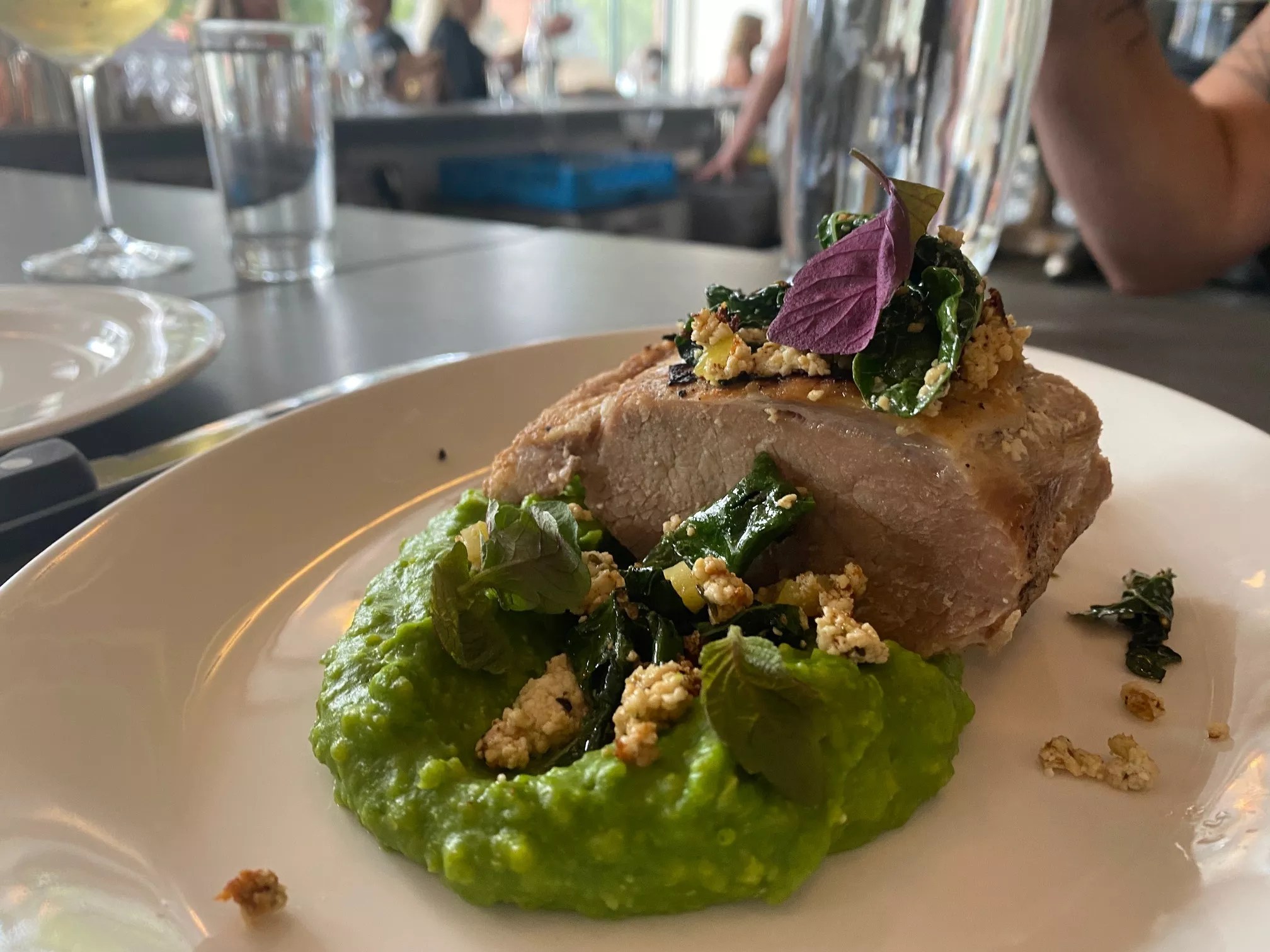 The creamy labneh ($12), loaded with Greek herbs and served with toasted bread, are a standout, as are the mussels ($19), served classically but with a cider (instead of wine) sauce. The pork loin ($27) comes with a vibrant, green-hued polenta that perfectly complements the meat, and the addition of morel mushrooms on the agnolotti ($18) upped the earthiness of the dish, which also includes ricotta, lemon and butter.