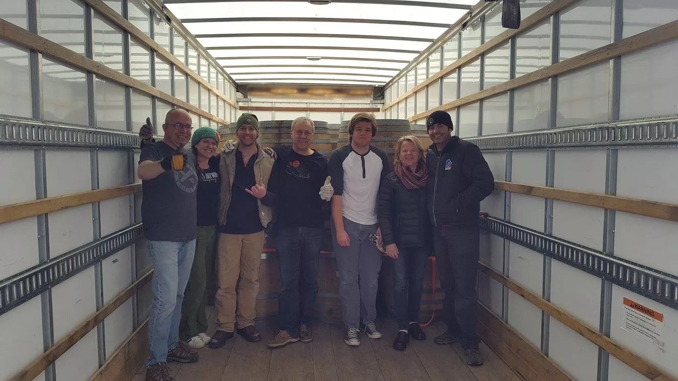 Bouckaert (left) and the Wilsons got some of their first barrels from Infinite Monkey Theorem in Denver.