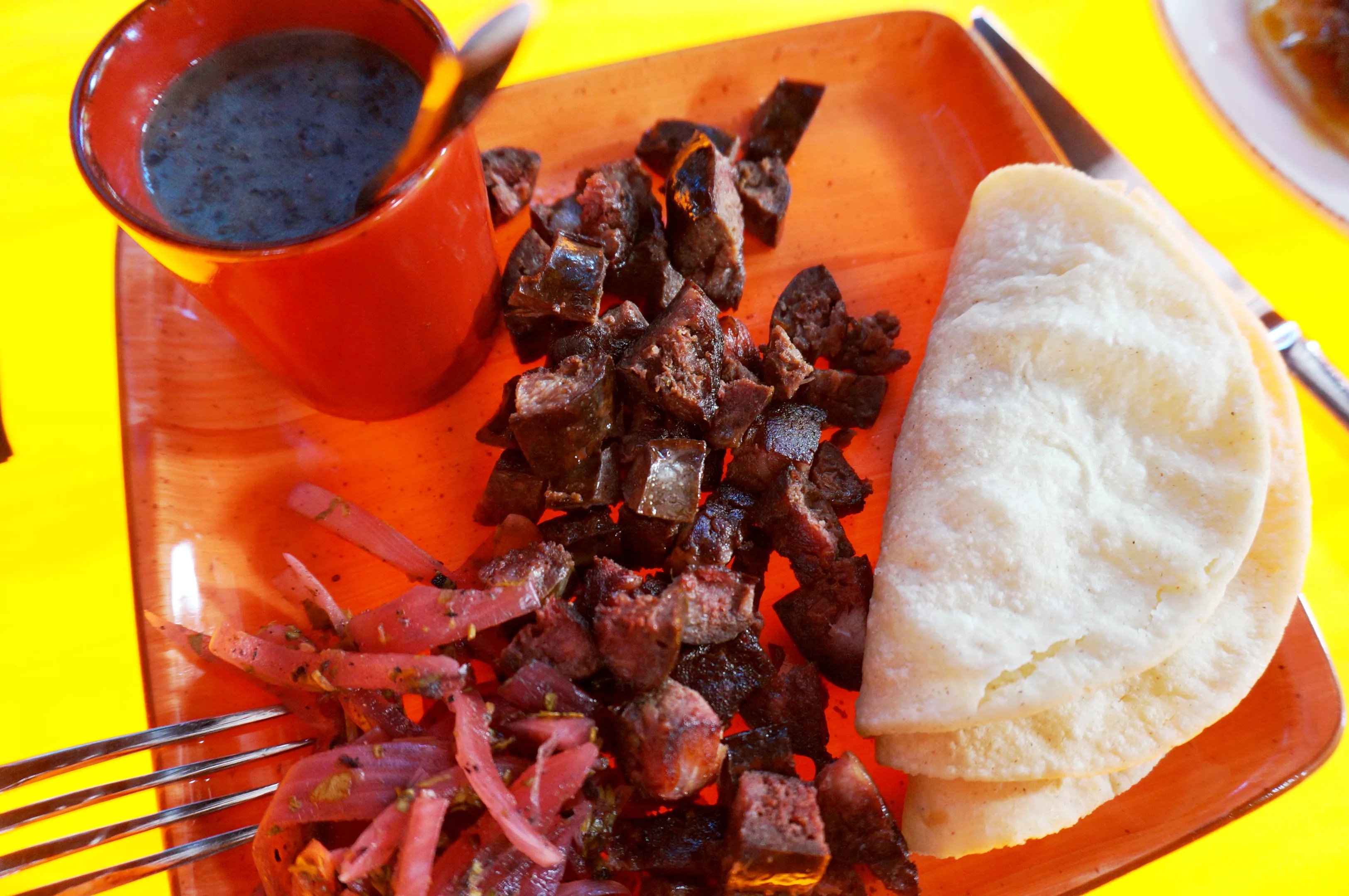 Pork-belly morcilla wih housemade tortillas.
