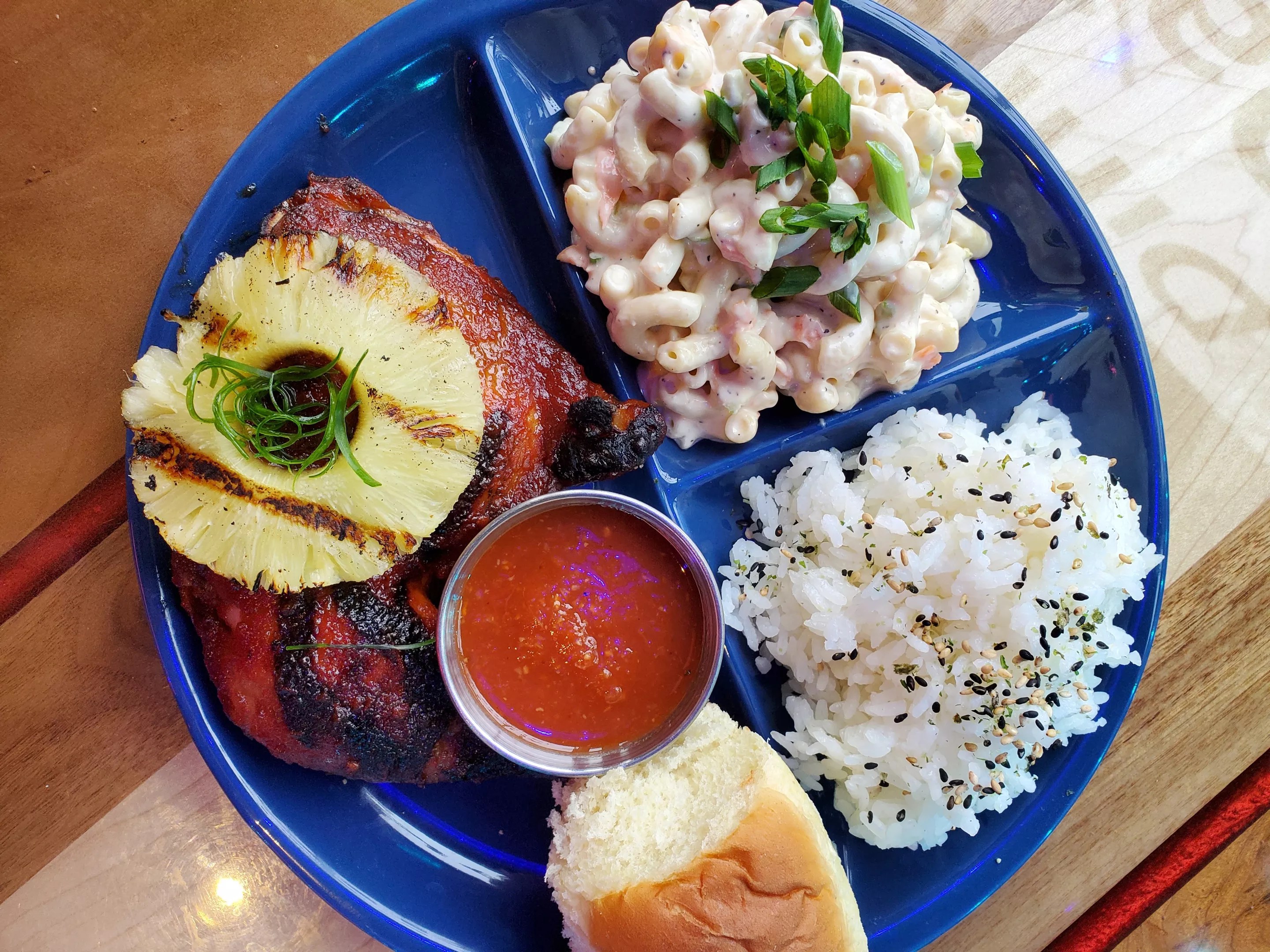 fieldTRIP serves Hawaiian-style eats including a huli huli chicken plate.