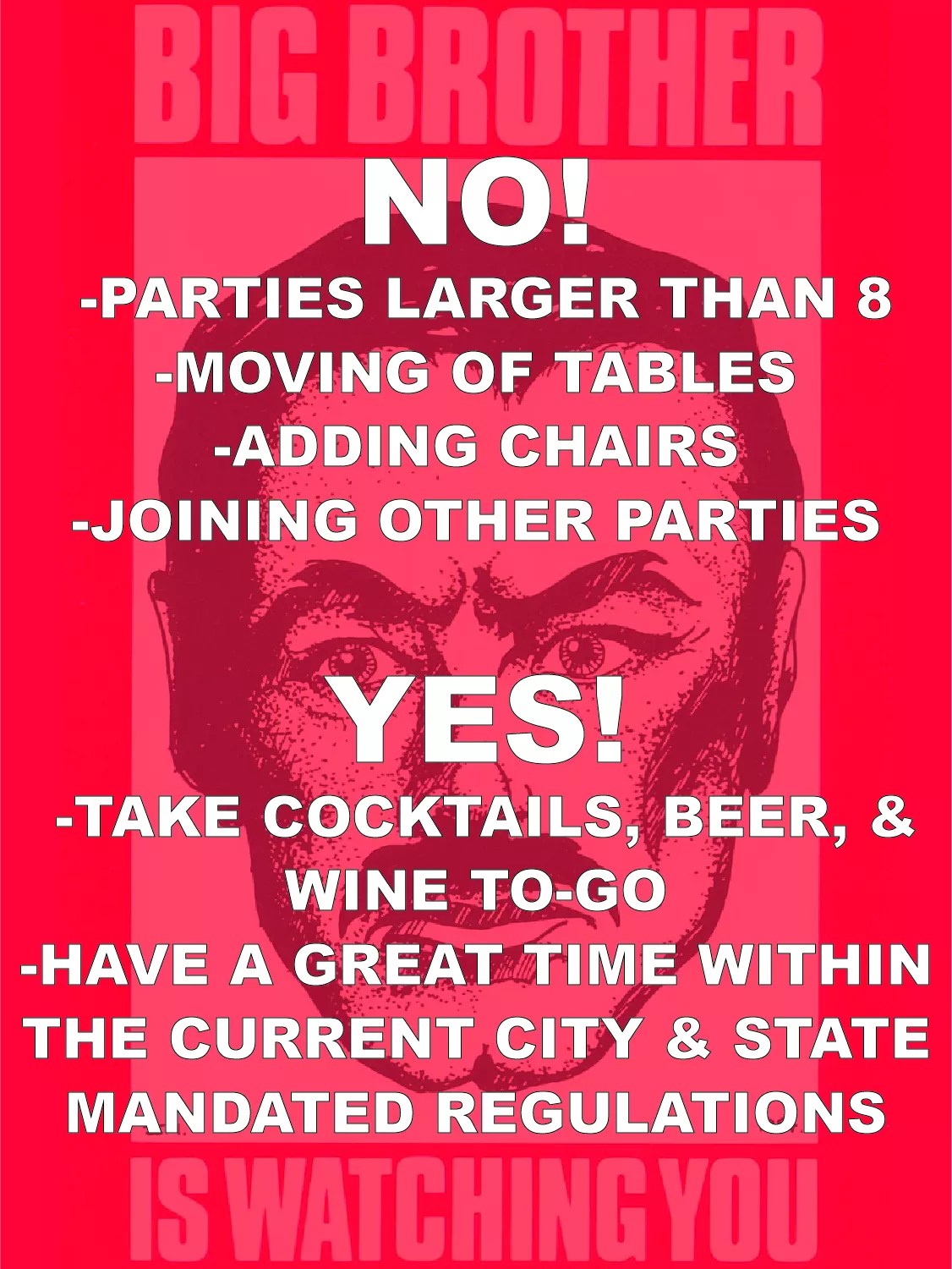 Woke up early, created some of the signage that we needed to open: signs about mask-wearing, moving tables, etc. We want to have signage and information everywhere, because a confused guest easily becomes an angry guest. But we wanted to present them in a way that the new rules didn’t seem overwhelming. So we decided to be a bit cheeky.