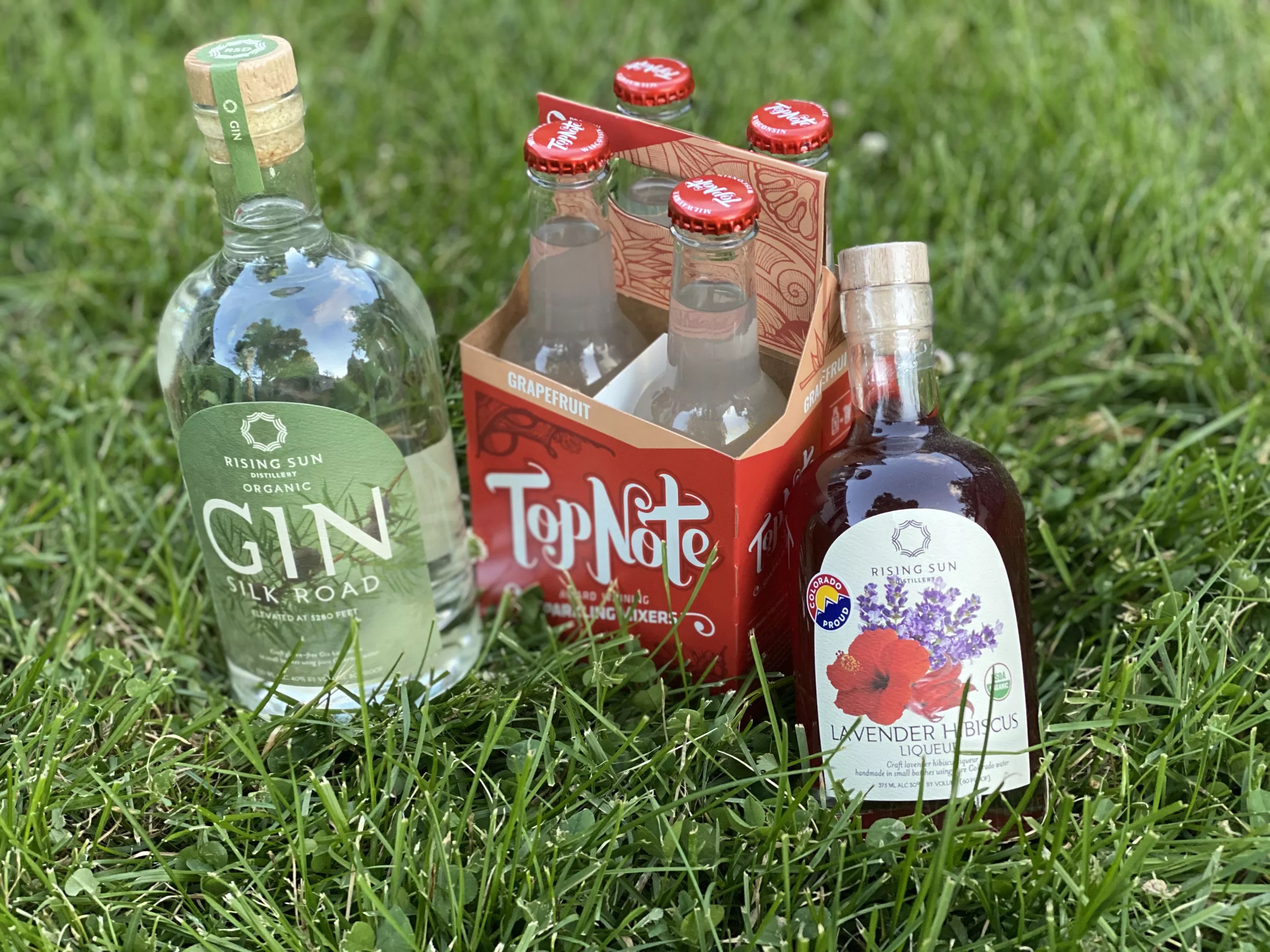 However, what really caught my eye are Rising Sun’s bevy of cocktail kits. These range from $44 to $115, and really help you tie one on with a crowd. Hard lemonade and Perfect Peach kits make great summer refreshers, and there are two Bloody Mary options (one with chile white whiskey, the other with vodka) for your brunch needs. But I’m a gin girl, so I opted for a lavender hibiscus cocktail kit, which includes a 750ml bottle of gin, a 375ml bottle of hibiscus liqueur and a four-pack of TopNote grapefruit soda, all for $77. Rising Sun even threw in a four-ounce bottle of homemade hand sanitizer.