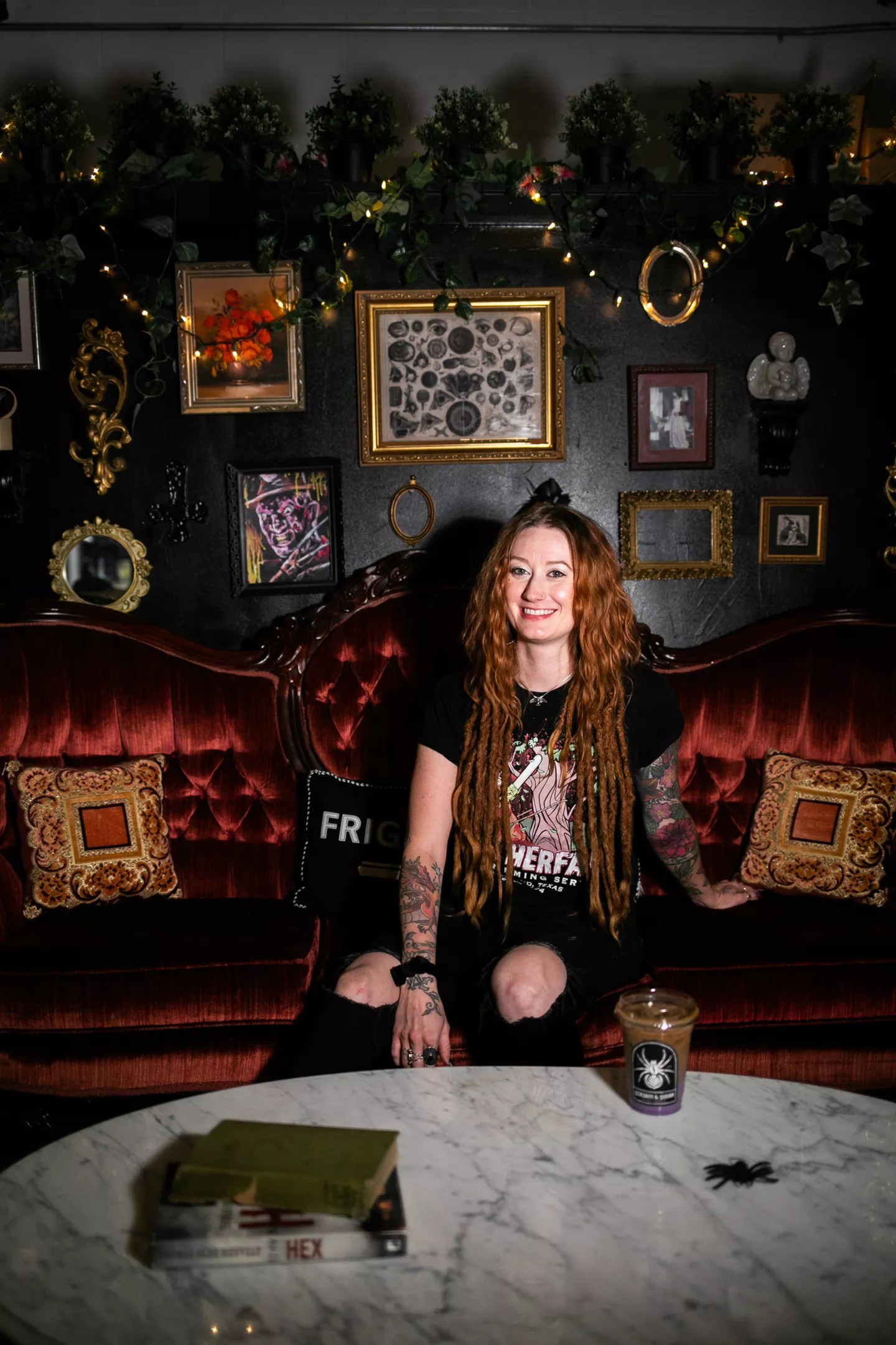 The idea for Scr3am & Sugar came to Johnson during COVID. In addition to watching a lot of scary movies, she spent much of quarantine contemplating what she wanted to do with her life when the pandemic ended. She’d worked in a variety of positions in the retail and service industries, but “it always boiled down to that coffee culture,” she says. “It’s serviced-based, but I loved the daytimes, hanging out in a coffeehouse and how that feels different than a bar or restaurant.”