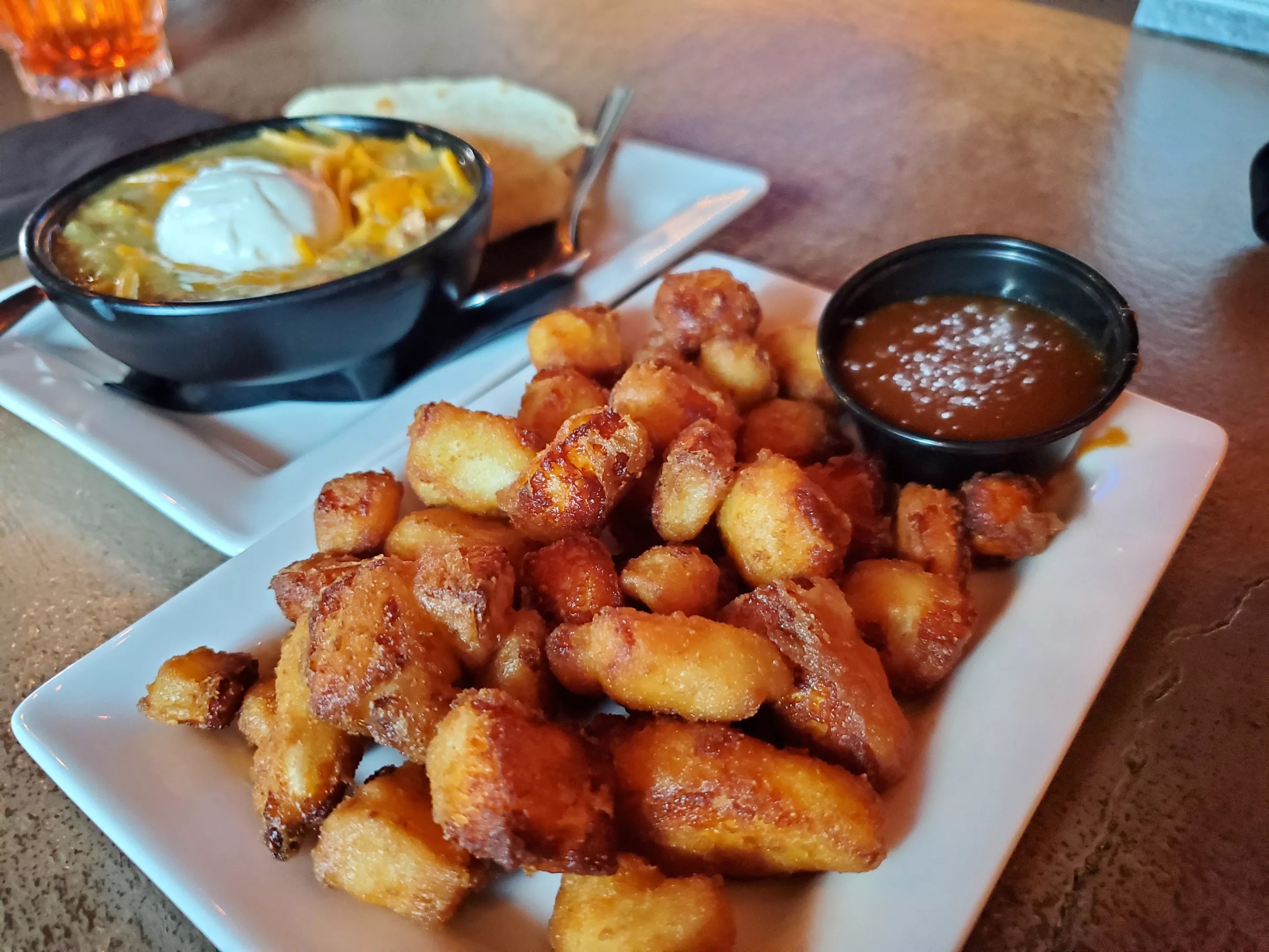 We recently tried a new twist on fried cheese curds at Griffin Tavern in the Denver Tech Center. At this casual neighborhood bar, you can get what is described as “golden cheese pillows” with a side of salted bourbon caramel. The salty/cheesy/sweet combo is perfect for pairing with an ice-cold beer.