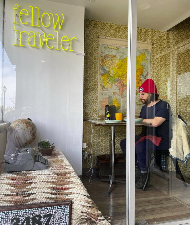 A man named Scott became the first guest to “perform” in the Solo Diner art installation at Fellow Traveler, a bar that opened recently in Englewood and serves a menu of vegan food. Ready for your moment in the spotlight? All you have to do is show up, ready to eat and drink alone while on display, in order to become a part of this performance art piece.