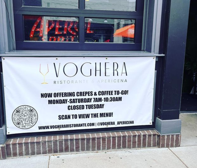 Crepes are popping up on Tennyson. Every Monday through Saturday from 7 to 10:30 a.m., visit Voghera Apericena for its crepes and coffee service to go. The menu includes three options: Nutella with strawberries and whipped cream; cinnamon and sugar; and mushrooms, spinach and cheese.