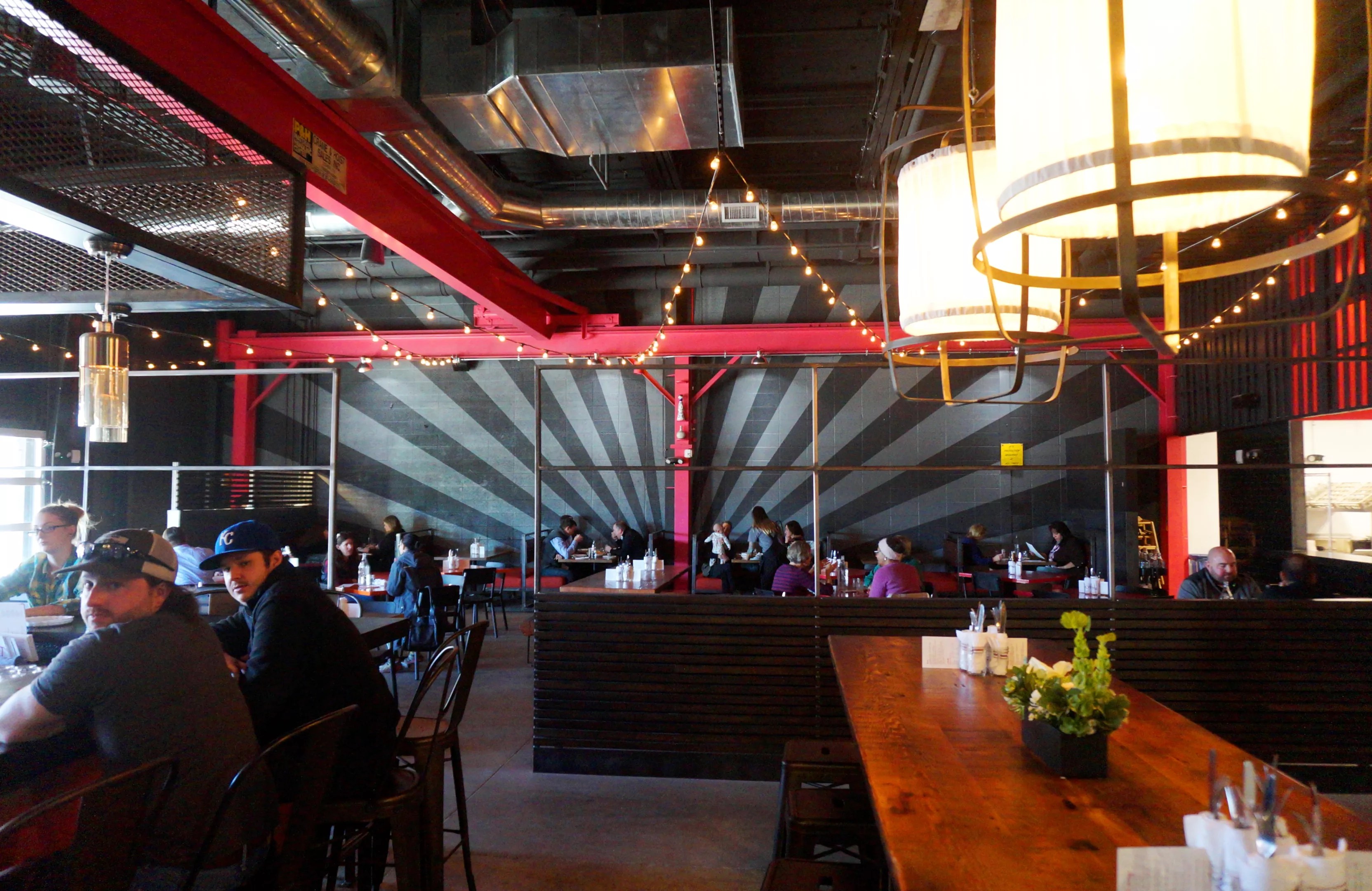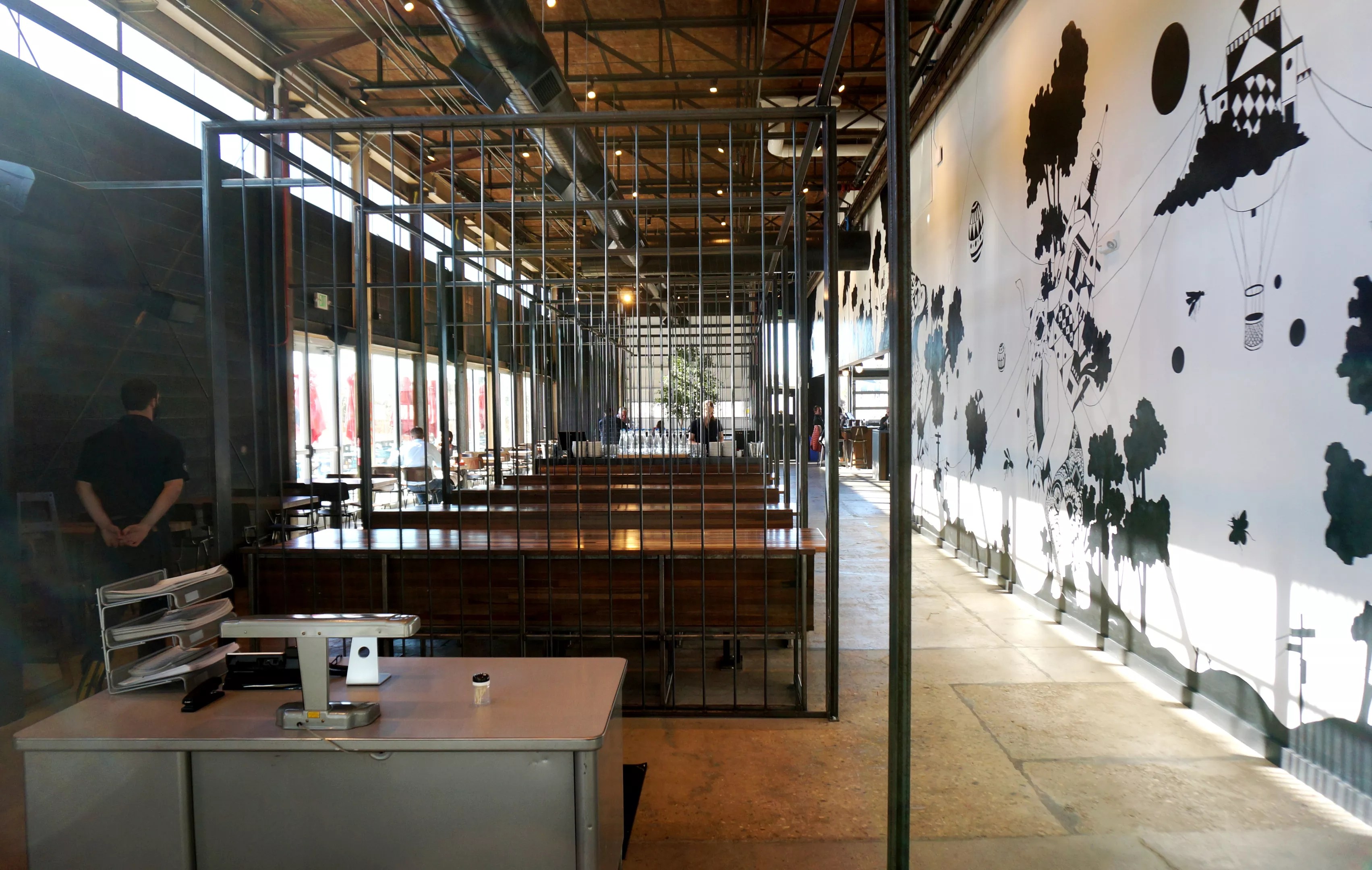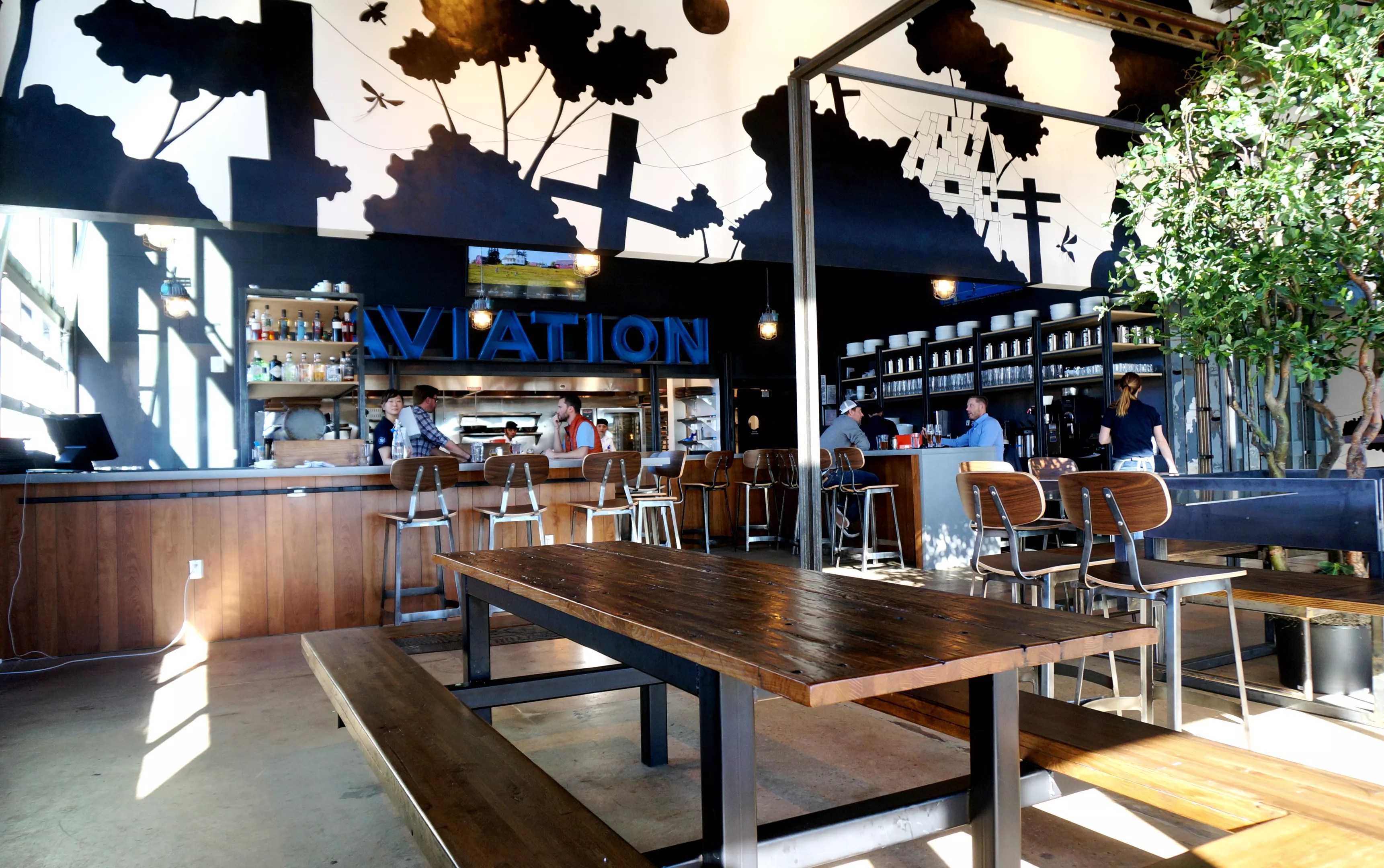 Putting a restaurant inside a former aviation factory means there’s plenty of space.