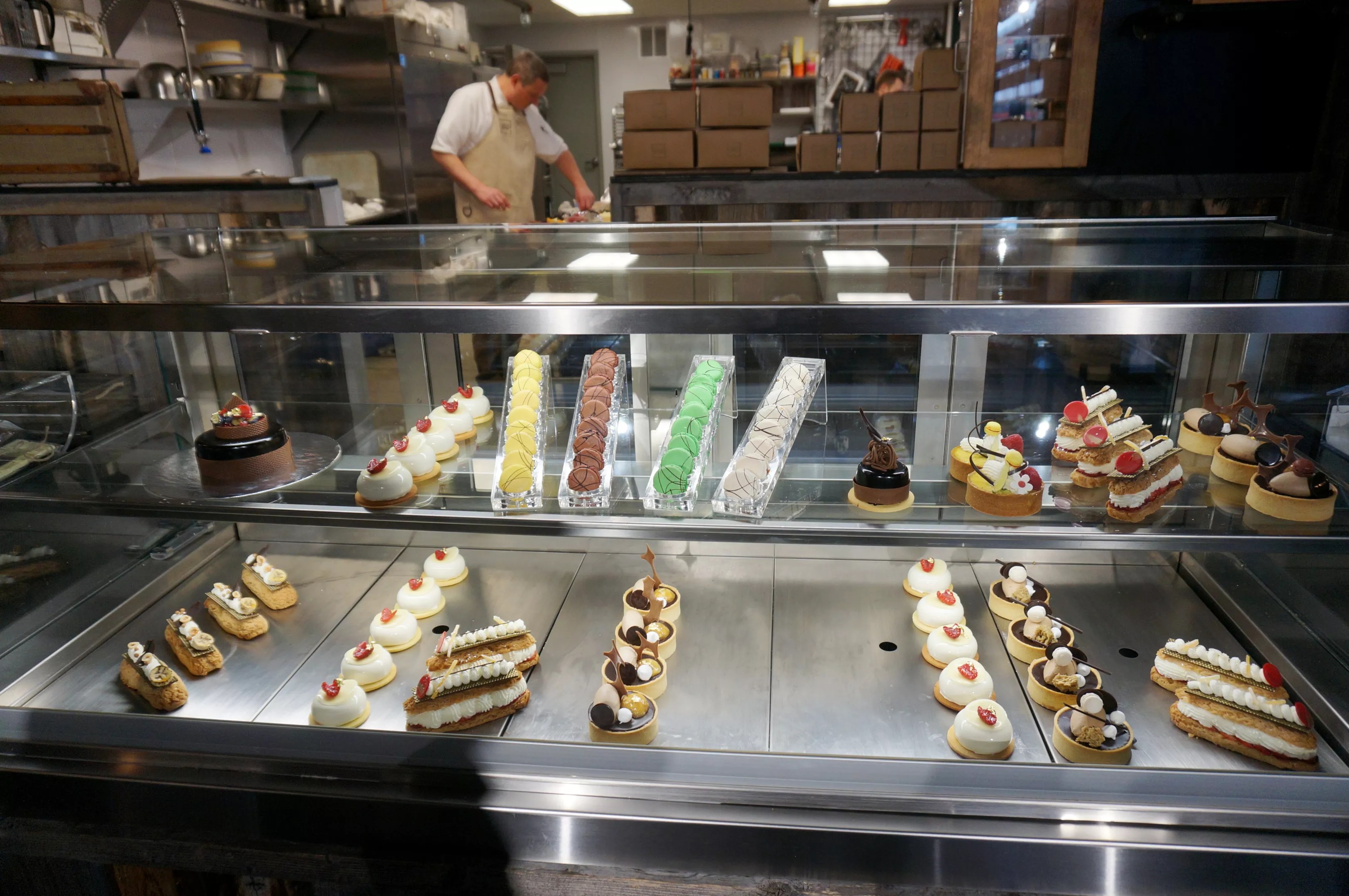 Miette et Chocolat The pastry case is filled with French delights at Miette et Chocolat. Mark Antonation The pastry chefs are on display at Miette et Chocolat. Mark Antonation