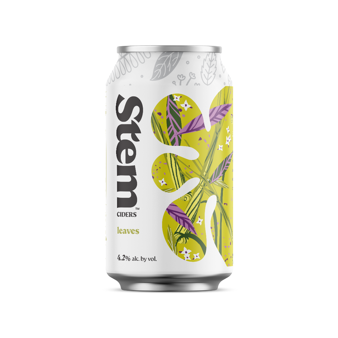 The new product design includes a clean white background and an updated wordmark with a leaf element coming off the “t” in “Stem” to reflect the brand’s roots. It can be seen on Stem’s latest products, two new botanical ciders called Leaves and Ginger Turmeric.