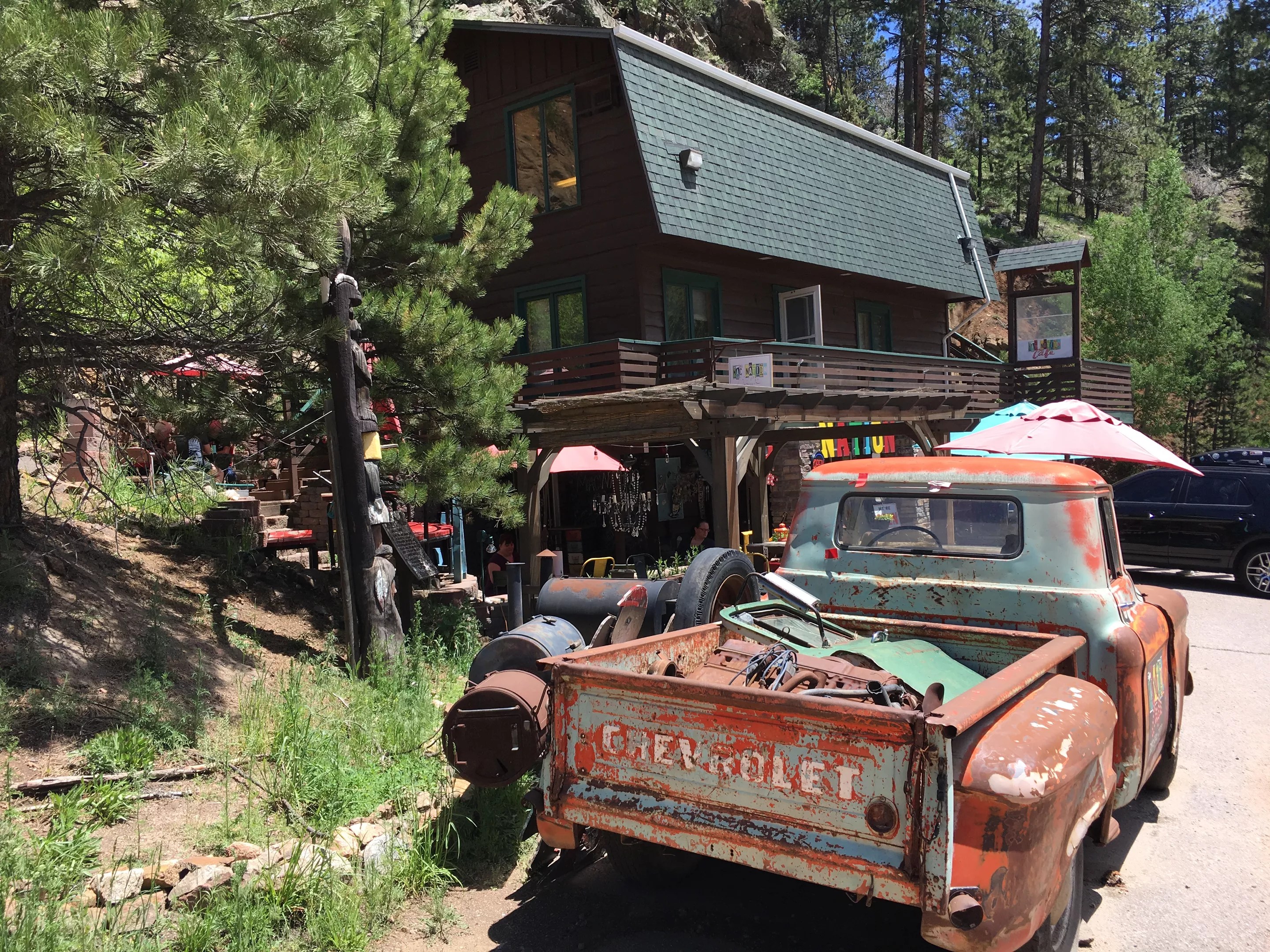 The mountains are calling your name – but so is a heaping portion of mac and cheese. And tendrils of wood smoke beckon with the aroma of roasting meats. Just up Parmalee Gulch Road from Highway 285, the towns of Indian Hills and Kittredge hide two restaurants that could hold their own against big-city competition, offering reasons beyond hiking, biking and other outdoor activities to hit the road for a day trip filled with good eats. A mountain town restaurant wouldn’t be complete without a vintage pickup truck. Mark Antonation