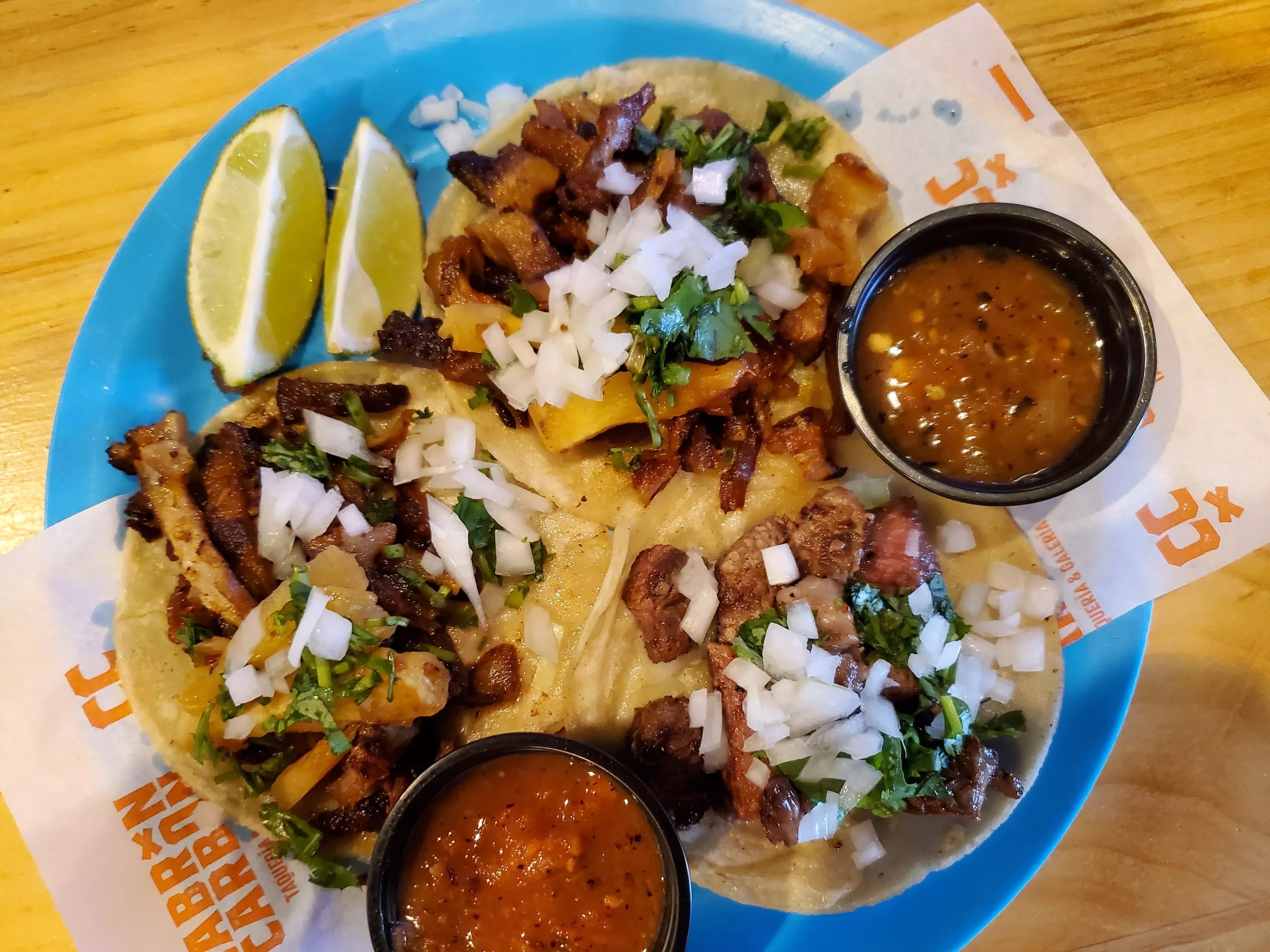 Cabrón Carbón at 1043 Broadway serves a stacked lineup of tacos, from birria and fried shrimp to sirloin, lengua and barbacoa. On Tuesdays, al pastor and chicken tacos are just $2 each. Bonus: The salsa bar here is fully loaded.
