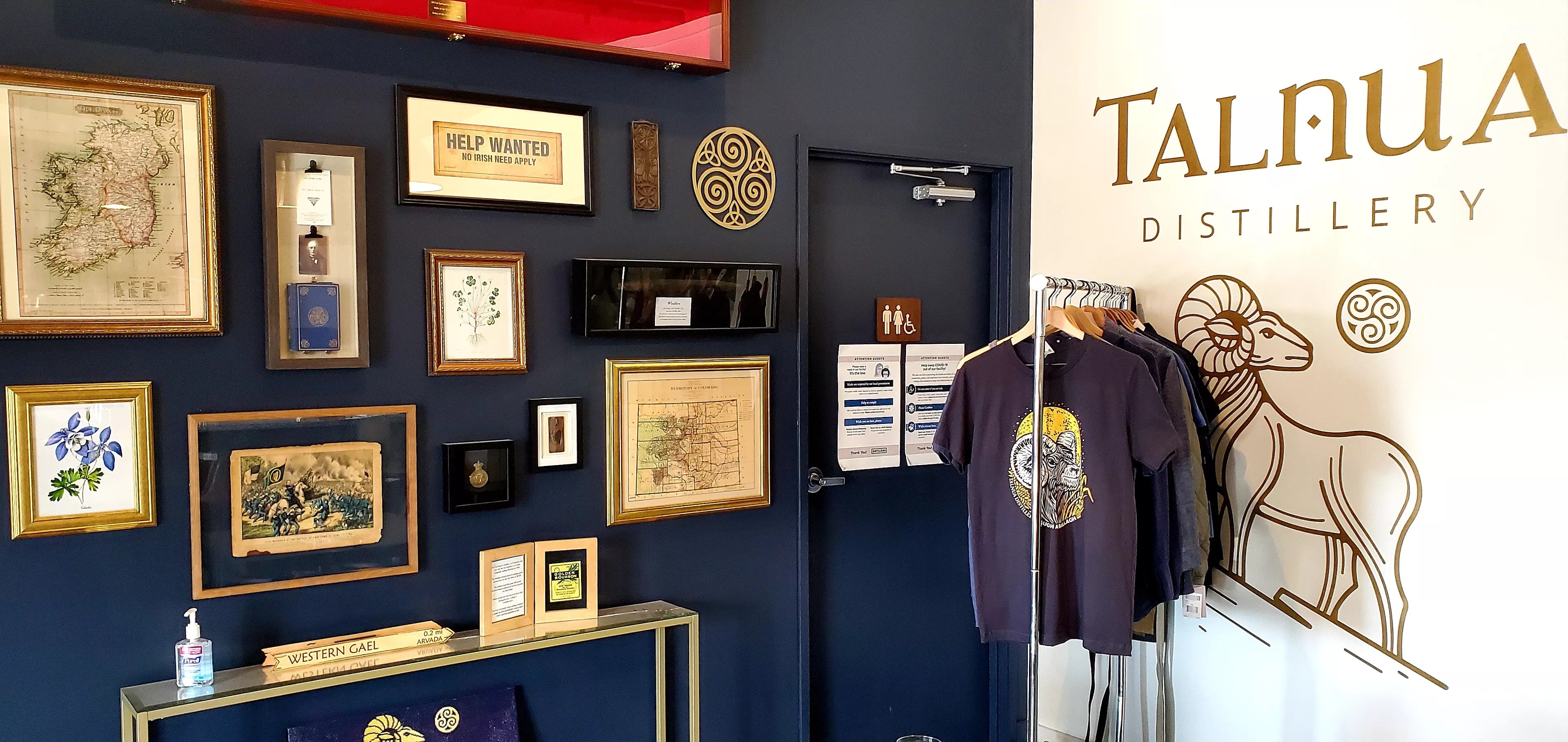 Talnua celebrates the link between Ireland and Colorado in its tasting room and logo.