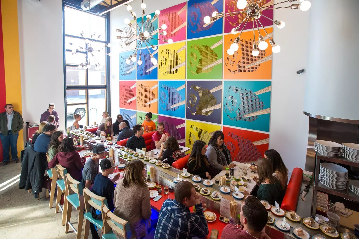 Even food prep and delivery are becoming more automated to help manage labor costs. After opening its first conveyor-belt sushi bar in RiNo at the end of 2015, Sushi-Rama now has four metro Denver locations, with a fifth slated to open next year at Broomfield’s Arista Place development, and the obvious robotic food delivery system that snakes its way through the dining room is only part of the automation. Plates have electronic chips on the bottom to keep track of freshness as they make their way around booths and bar counters on the conveyor belt. If a plate of sushi hits its time limit, a gate swings in front of its path to shunt it back to the kitchen. And in that kitchen, machines line nori wrappers with rice to make sushi rolls and turn out perfectly formed balls of rice for nigiri. You won’t see sushi chefs wielding flashing knives over massive slabs of fish; most of the seafood slicing takes place at a chilly central kitchen before the meat is delivered to each restaurant in a refrigerated van.