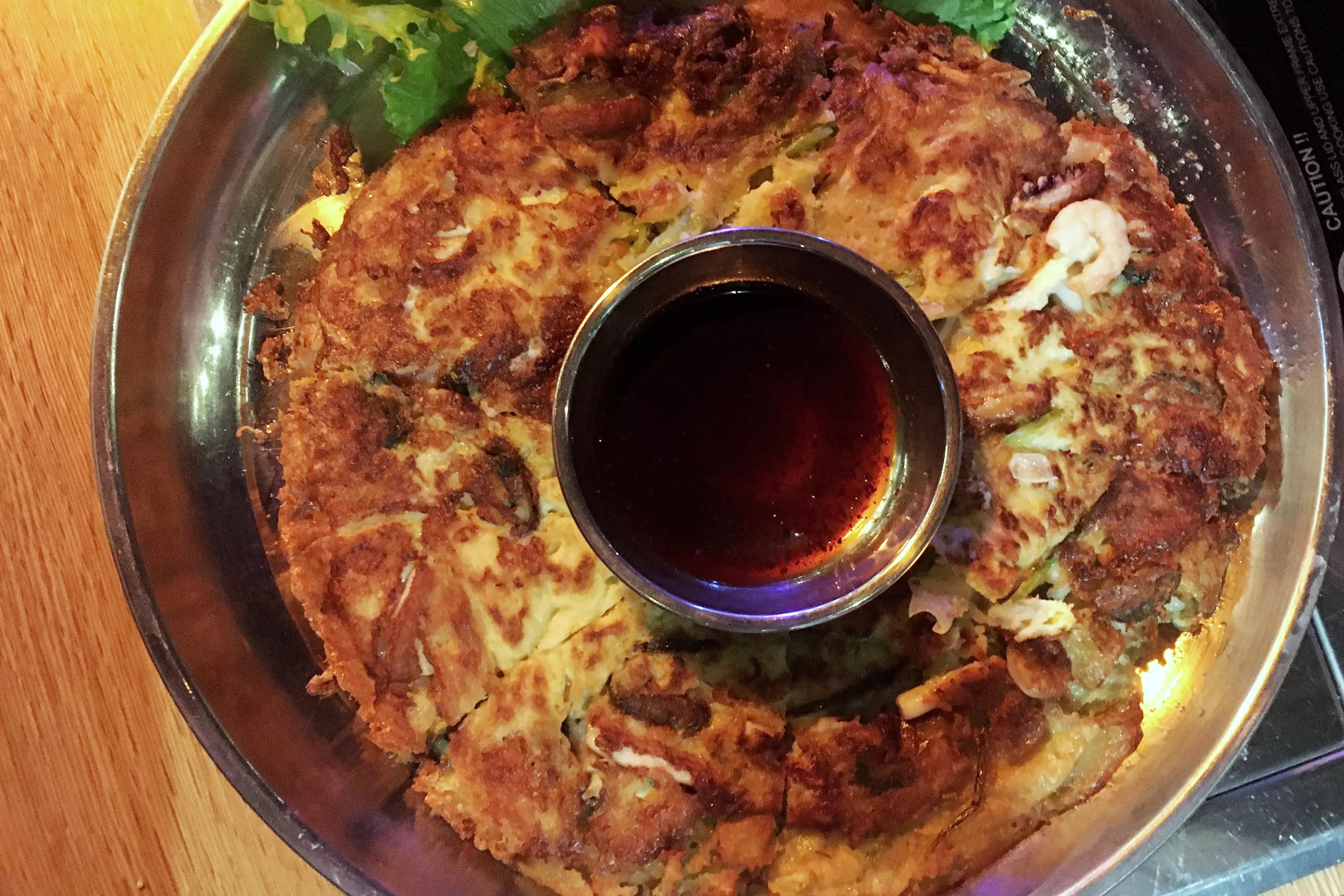 The seafood pancake serves several.