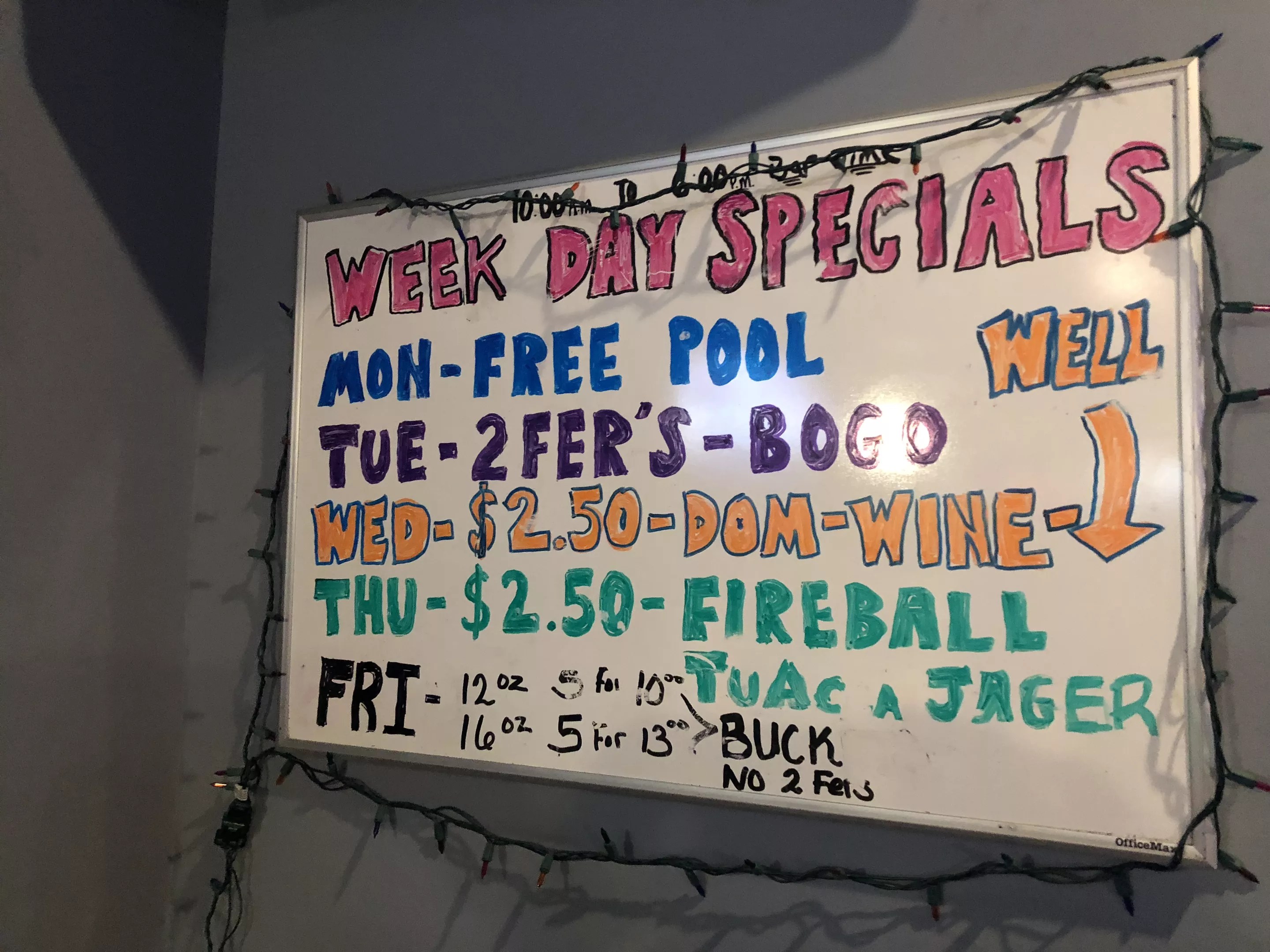 Customers are loyal here; they consult a list of which bartenders are working on which days so they always know when to come in for their favorite. But even if the bartender doesn’t recognize you, you can still partake in specials like free pool on Monday nights, two-fer Tuesdays and $2.50 for all wines, wells and domestic beers on Wednesdays. And during the Super Bowl on Sunday, there will be $10 buckets of beers. But the more complicated drink specials aren’t really the main attraction here. The drinks are always cheap, as an $8.25 round of drinks my friends and I got during prime time on Saturday night proved.