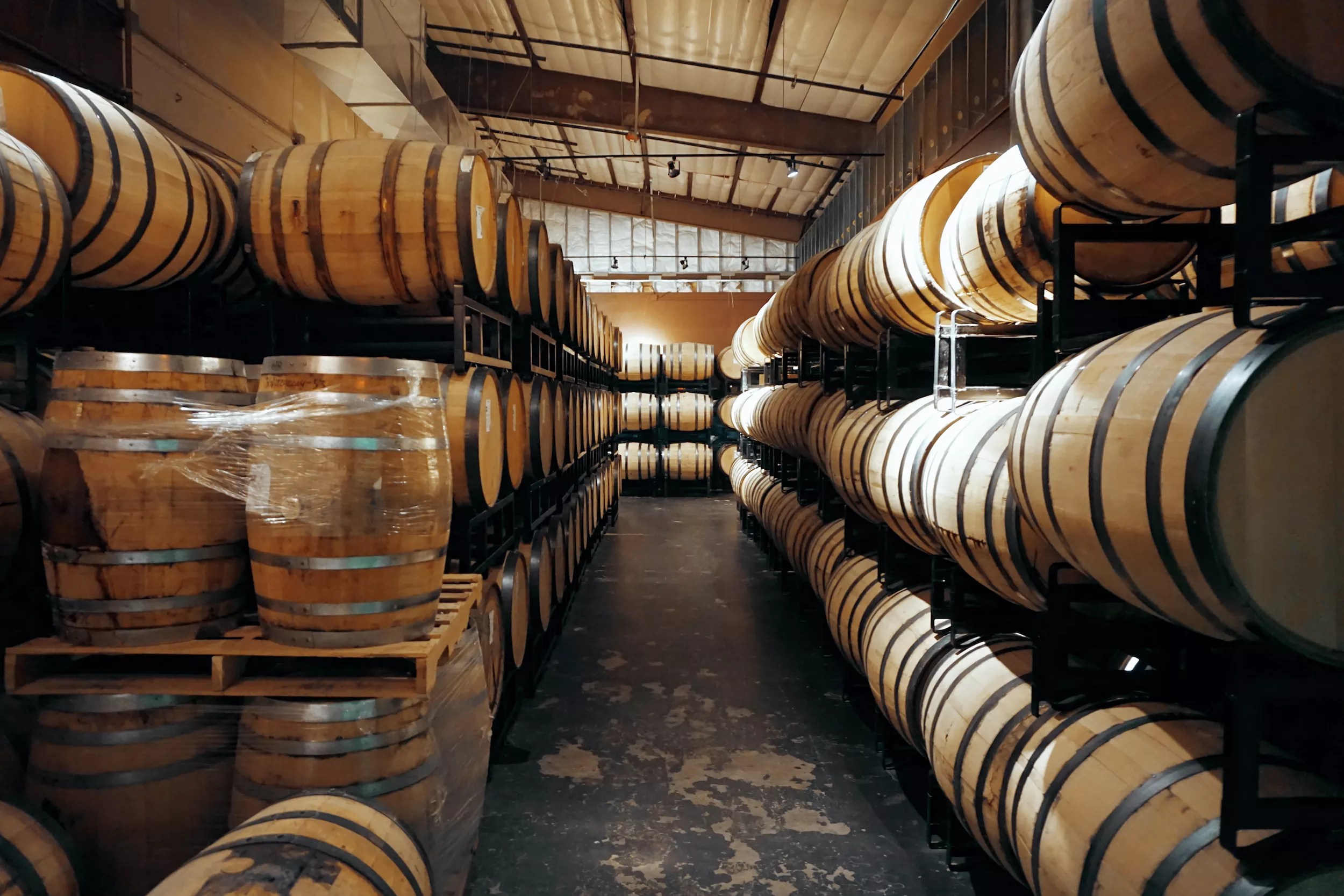Barrels of Atticus Jones Straight Rye Whiskey at the Family Jones distillery in Loveland.