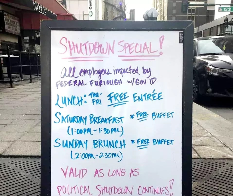 Thanks to partisan bickering in Washington, D.C., the federal government shut down last January, leaving many federal employees in Denver without paychecks. But the restaurant community stepped up, offering free and discounted food and beverages until the shutdown ended. We kept track to make sure those in need found their way to the right places.