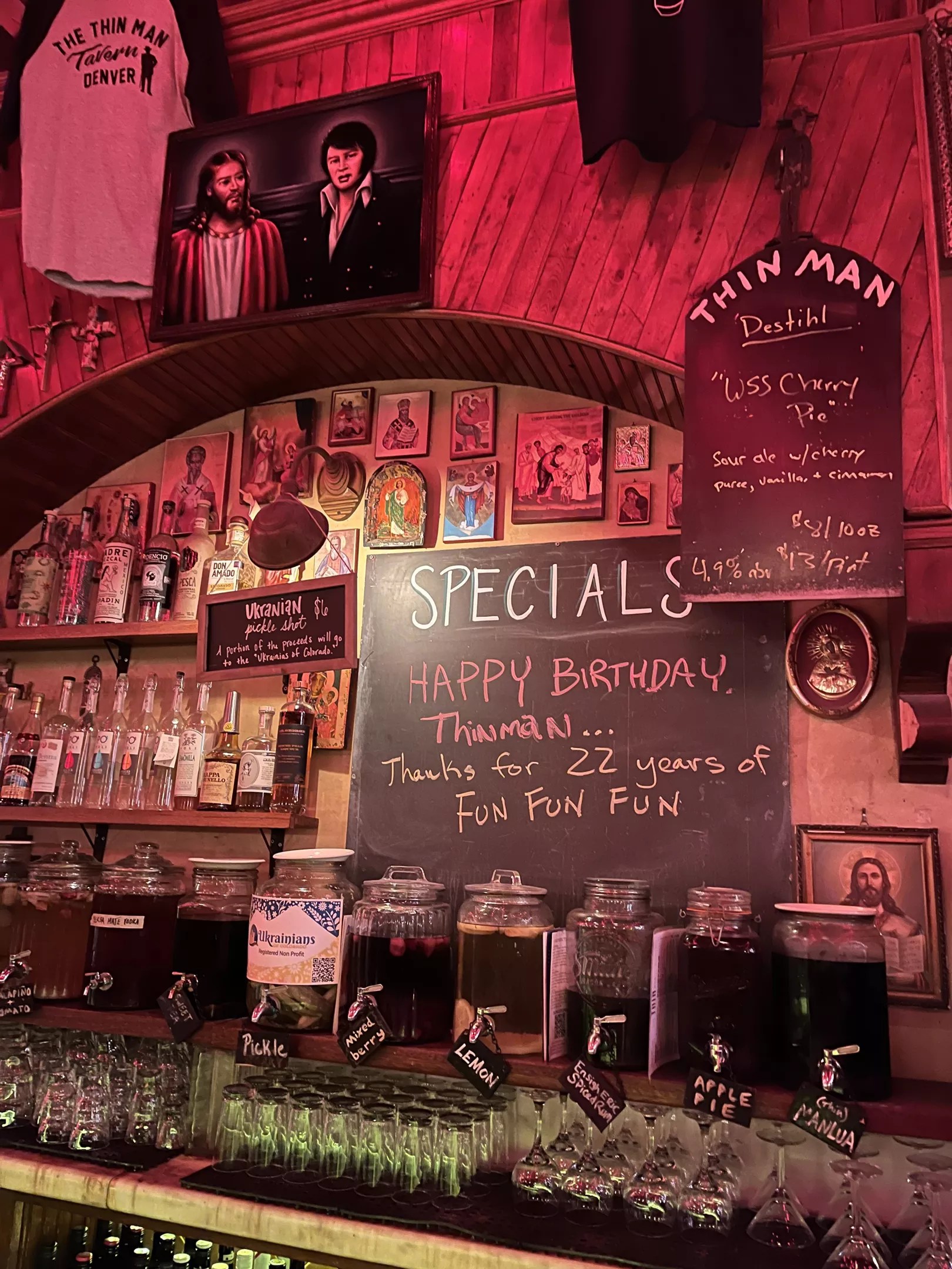 The bar has long possessed a socially conscious aspect, as well. From the two large Ukrainian flags hung from the rafters to the fundraising contributions made with each purchase of its Ukrainian pickle shots, the Thin Man wants to be connected to global matters as much as local causes.