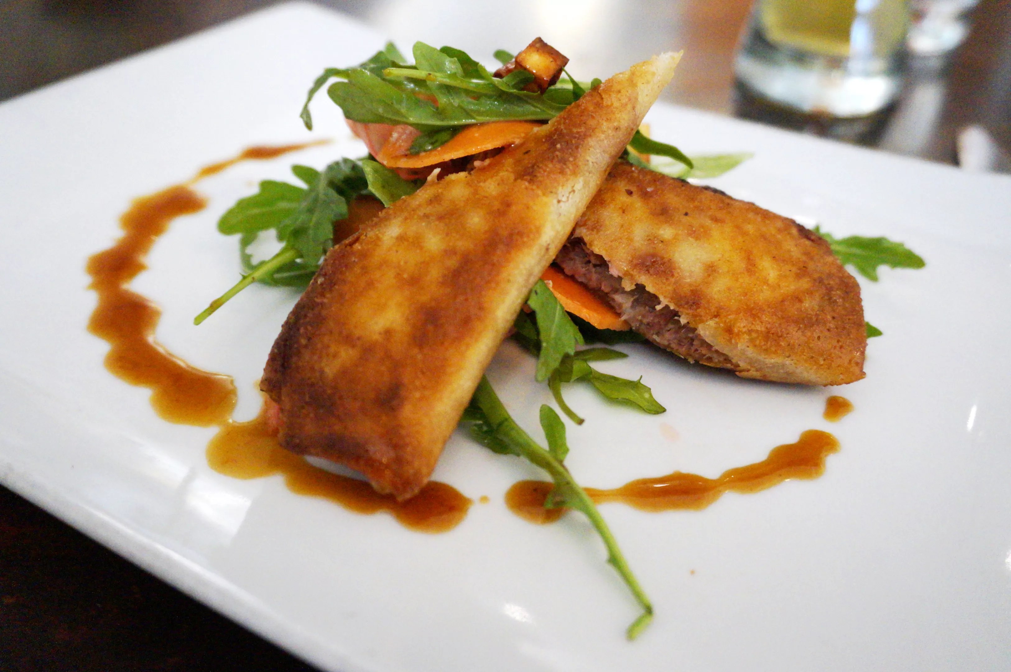 Acorn Crisped pastry dough surrounds tender braised lamb in this happy-hour dish at Bistro Barb Mark Antonation