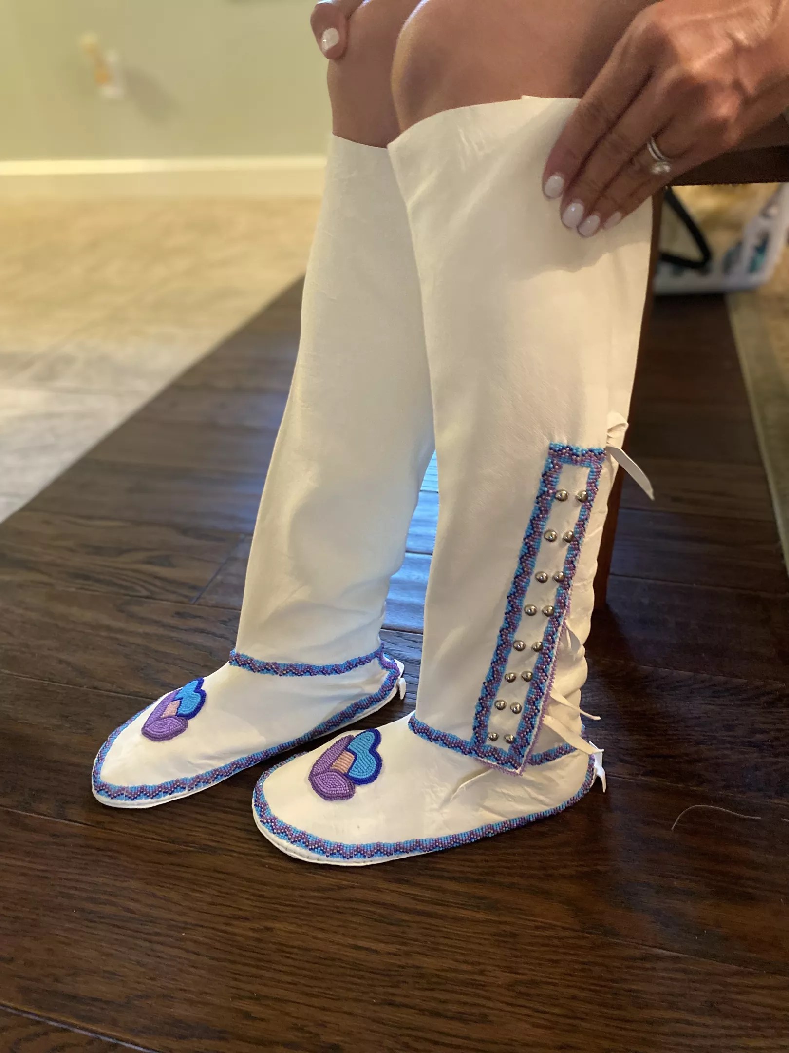 Inside the car were suitcases filled with traditional Osage regalia. The items stolen are described as “two finger-woven women’s belts, girl’s broadcloth ribbon work skirt, man’s suit (leather leggings and broadcloth ribbon work breechcloth), boy’s broadcloth suit (leggings and breechcloth), man’s horsehair roach and spreader, boy’s horsehair roach and spreader, man’s and boy’s moccasins, eagle wing fan, beaded bandoliers, women’s beaded leggings (moccasins), and various adornments and jewelry. These items were in two vintage brown and blue hard-sided suitcases.”