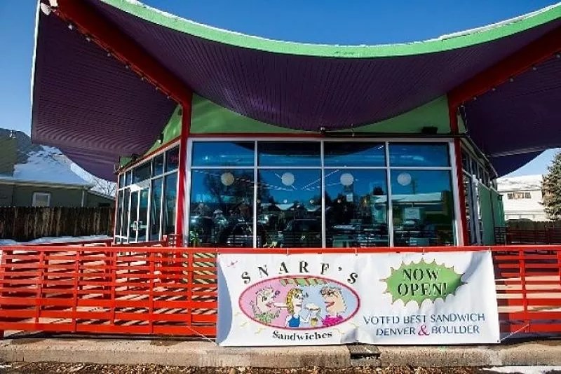 Even if Tom’s Diner goes, a few Googie-style spots remain in town, including the Snarf’s at 5001 West 38th Avenue, which occupies a building designed by the Denver architecture firm of Kellogg & Sayer. It started life in the ’50s as part of the Big Top Auto Mart gas station chain, then went through many incarnations, each sadder than the next, before Snarf’s owner Jim Seidel snarfed it up for one of his sandwich shops five years ago and gave it a major rehab that restored its original Googie glory, also adding some fun new art pieces.