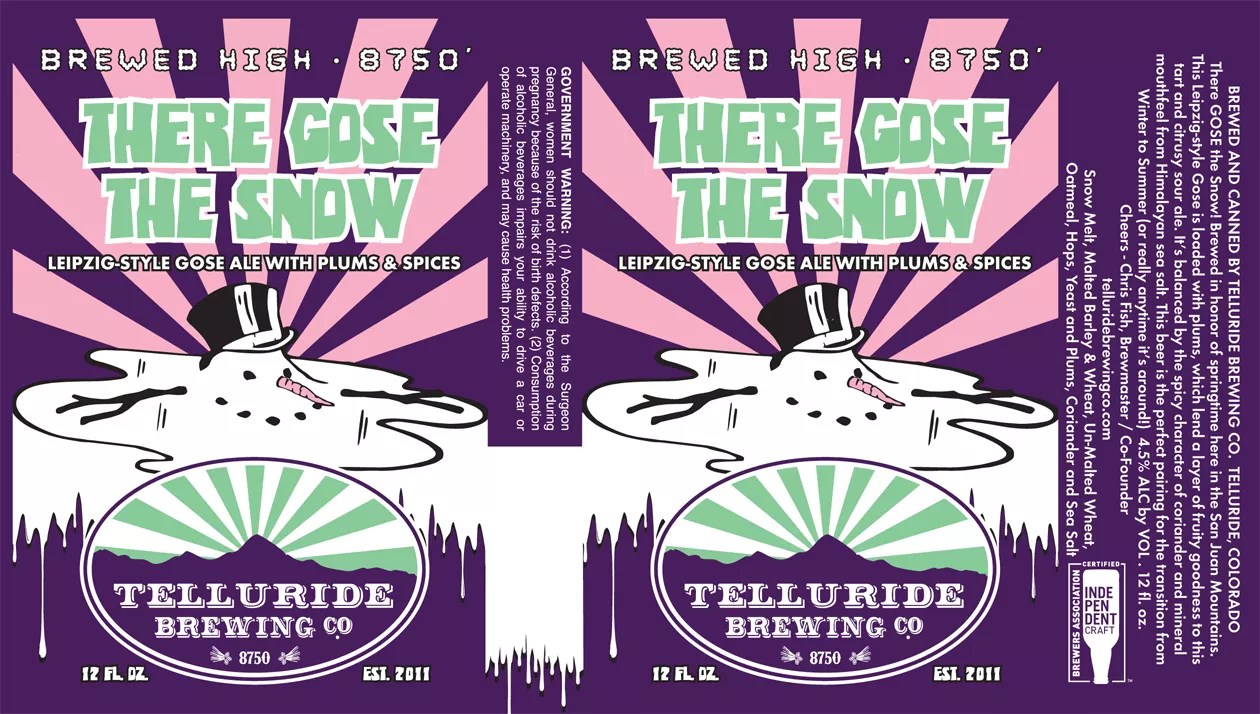 Previously brewed for draft only. There Gose the Snow marks the end of the snow season. It will come out in cans for the first time in April.