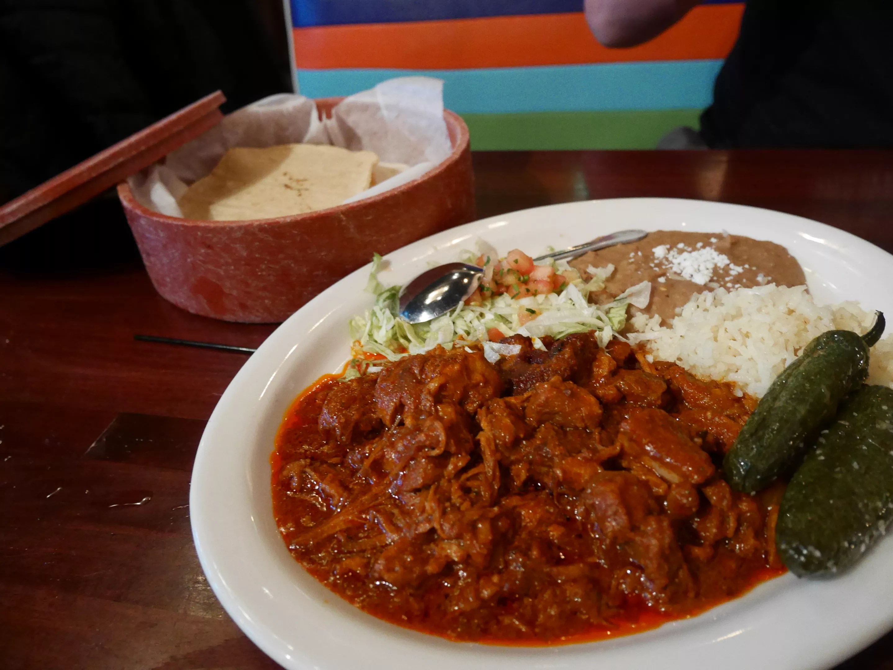 For a pork option, puerco con chile Colorado has an incredible, unique flavor from the guajillo chiles. The sauce poured over the tender pork is slightly acidic, but unveils a balancing sweetness with each bite. If you’re really feeling like kicking up the heat a notch, you can add fried jalapeños as a side. And because of the inexpensive first drink, you’ll have money left over for a heat-quenching bottle of Pacífico lager to go with your entree.