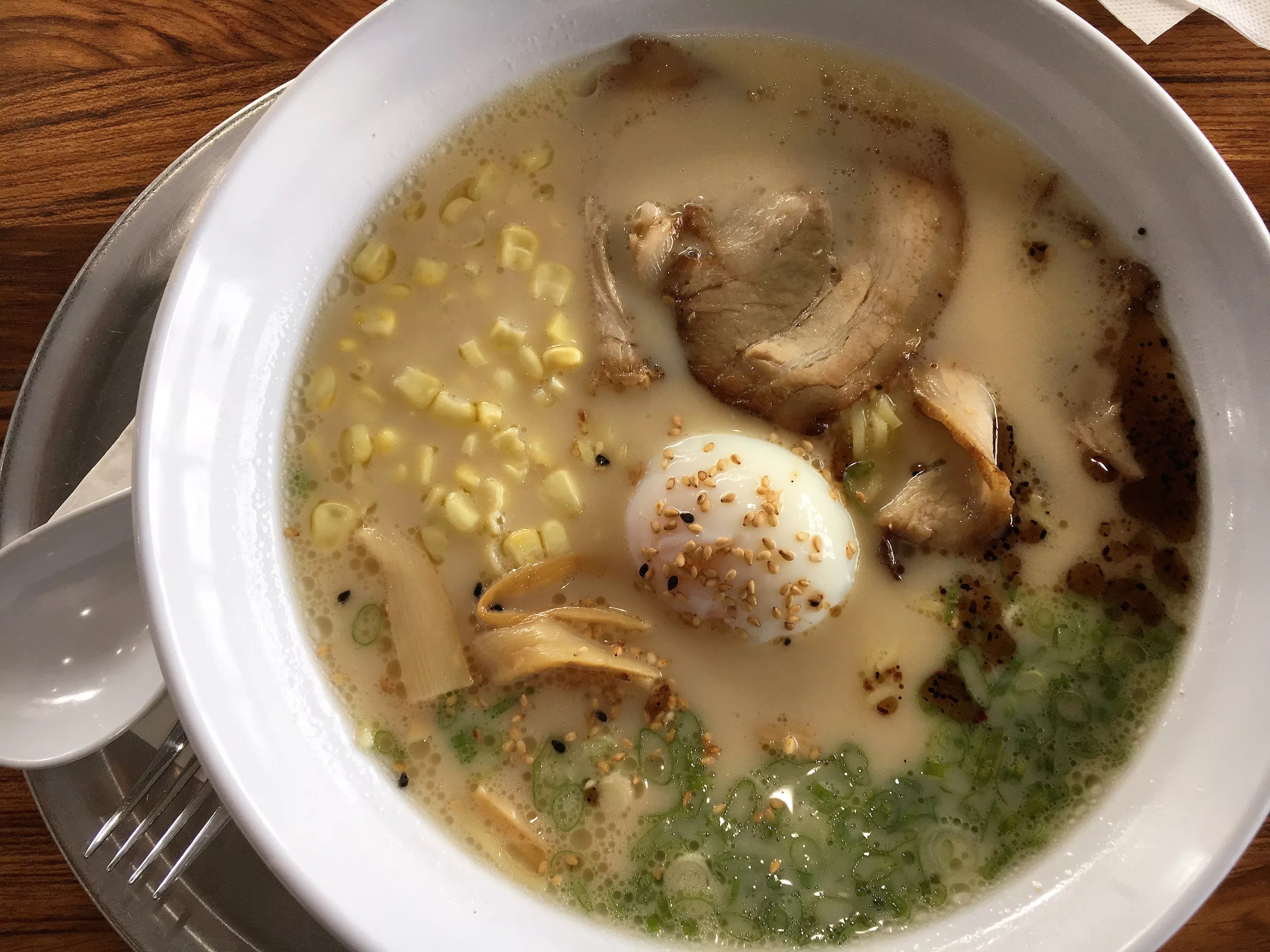First: spelling counts. “Tonkatsu” is not ramen; it’s a breaded pork cutlet. “Tonkotsu” is a style of ramen broth made from pork bones. Confusing the two words is an easy mistake, but one most diners only commit once, since that single vowel shift makes a huge difference in what shows up on your plate. Ramen shop owners don’t expect Westerners to learn Japanese before ordering, but a dash of etymology reveals why tonkotsu broth should be milky-white in color. “Ton” translates to “pig,” and “kotsu” means “bones.” Tonkotsu broth is made by boiling pork bones (not gently simmering, as is done for clearer soup stocks) and aromatic vegetables (onion, ginger and mushrooms, for example) until the liquid becomes milky with collagen, protein, emulsified fat and minerals. If it’s not milky, it’s probably not a very tasty tonkotsu.