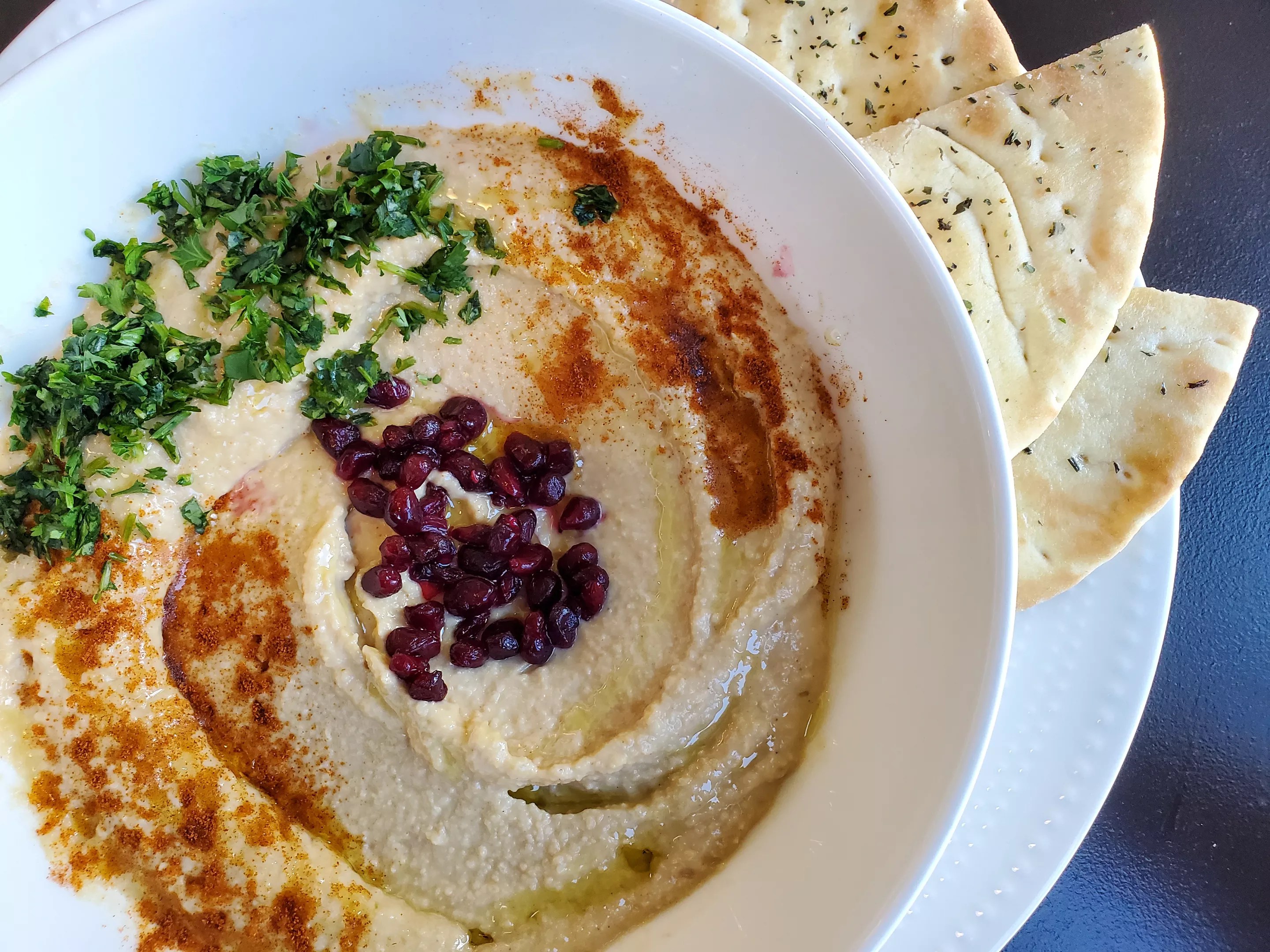 A hearty portion of hummus is just .