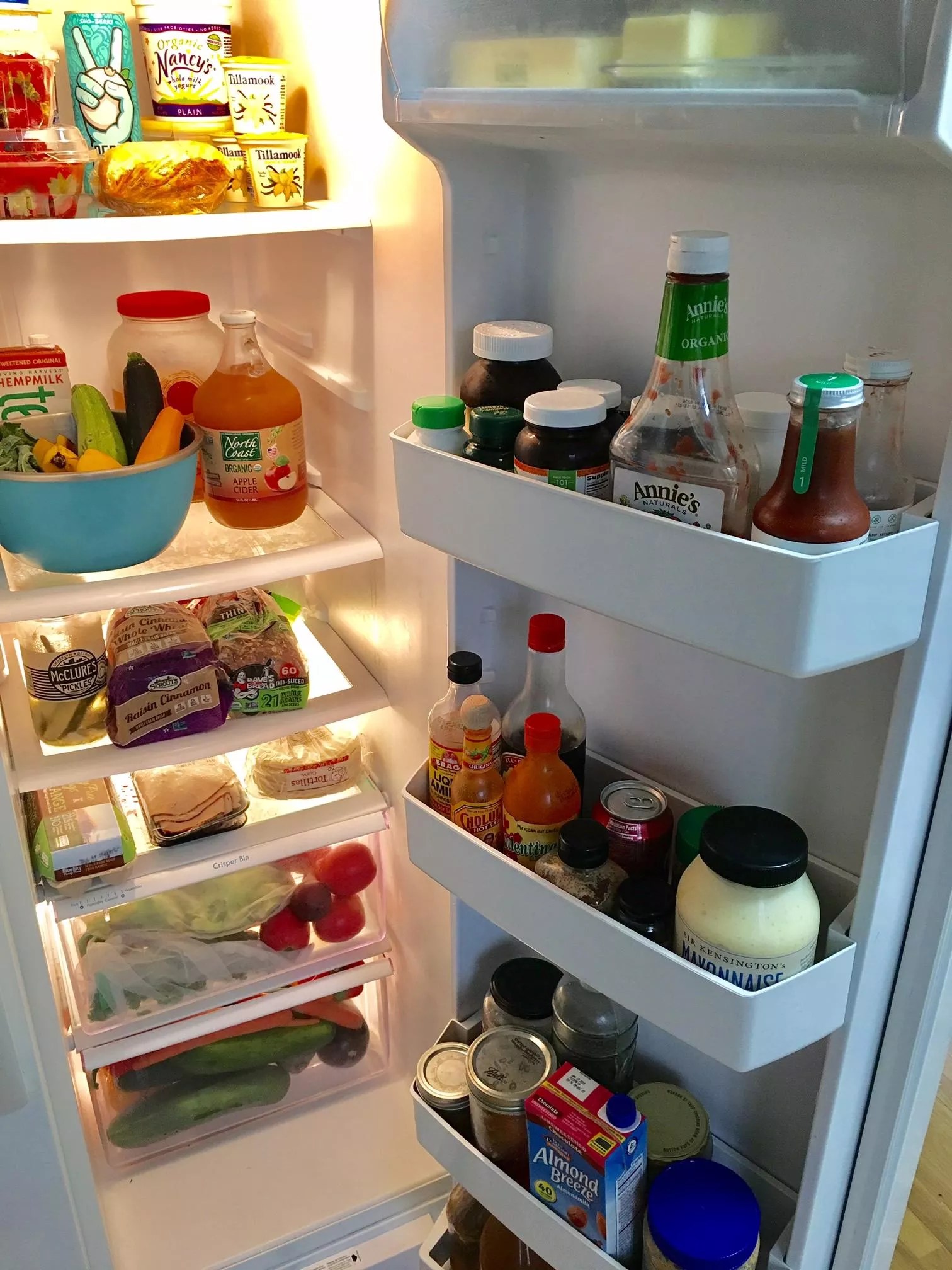 Always in Starkus’s fridge: eggs (from the chickens), hot sauce and honey.